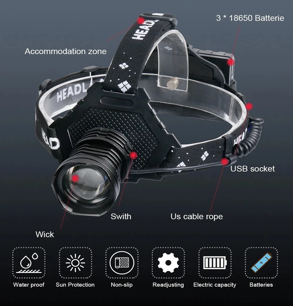 Фонарь налобный светодиодный Xhp90.9, 3 шт.