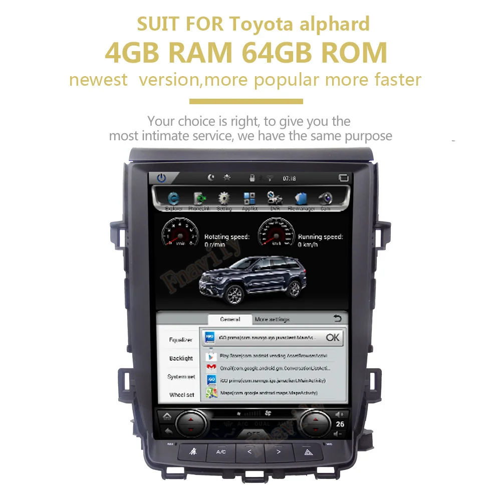 Автомобильный радиоприемник на Android 10 для toyota alphard, мультимедийная система, Авторадио, Dvd-плеер, GPS-навигация, вертикальный экран, стиль Теслы 12,1"
