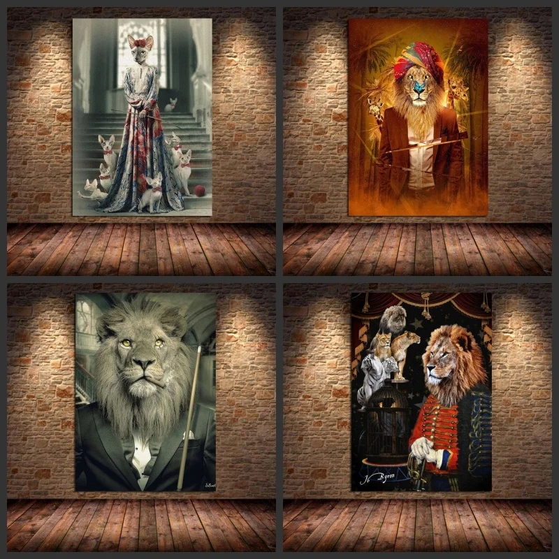 Мафия Лев курить в костюме играть снукер Картина на холсте настенны...