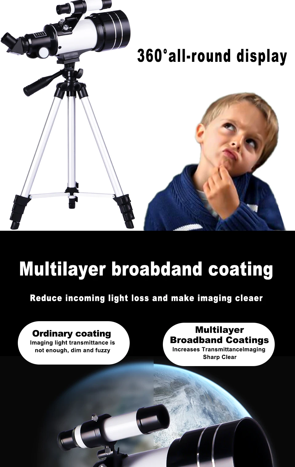 1. Астрономические телескопы помогут вашим детям избавиться от компьютерных игр2. Может смотреть туманность, луну и Марс, очень подходит для любителей и студентов3. Вы также можете наблюдать за пейзажами и птицами