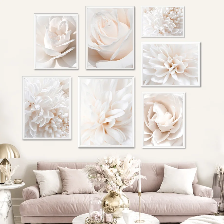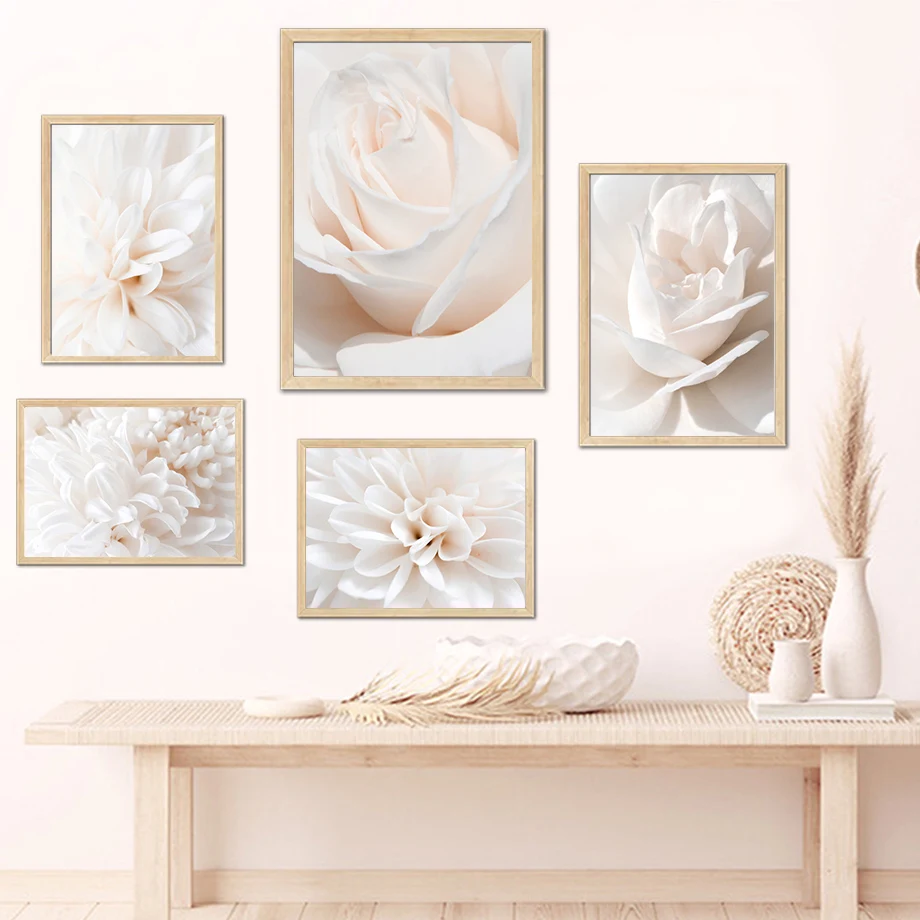 Белая Цветочная Георгин Роза Пион Минималистичная настенная Картина...