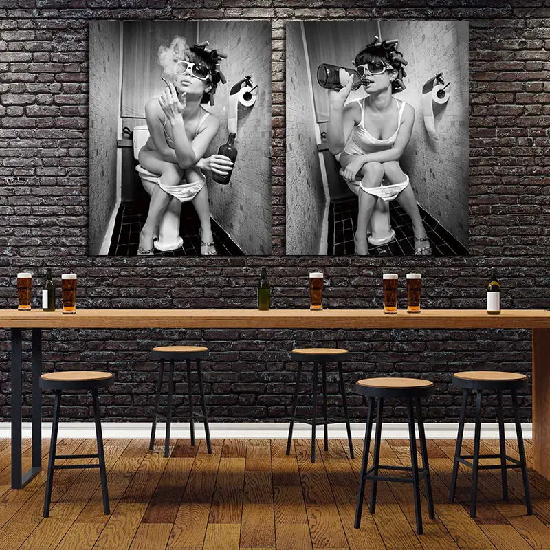 Винтажные постеры унитаза с изображением сексуальных женщин и девушек, сидит в туалете, скандинавские постеры, настенные картины для гостиной, Настенная Картина на холсте без рамки