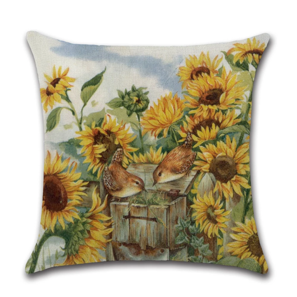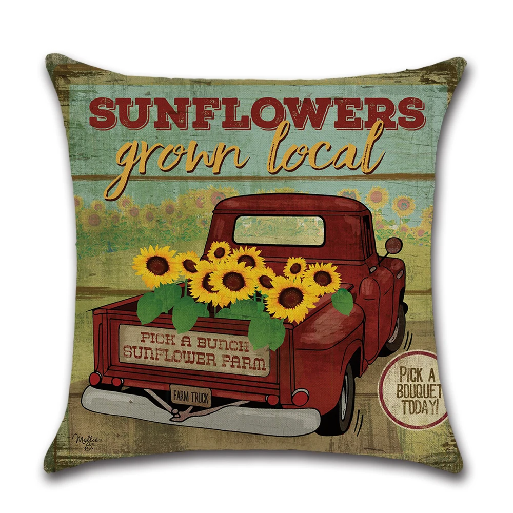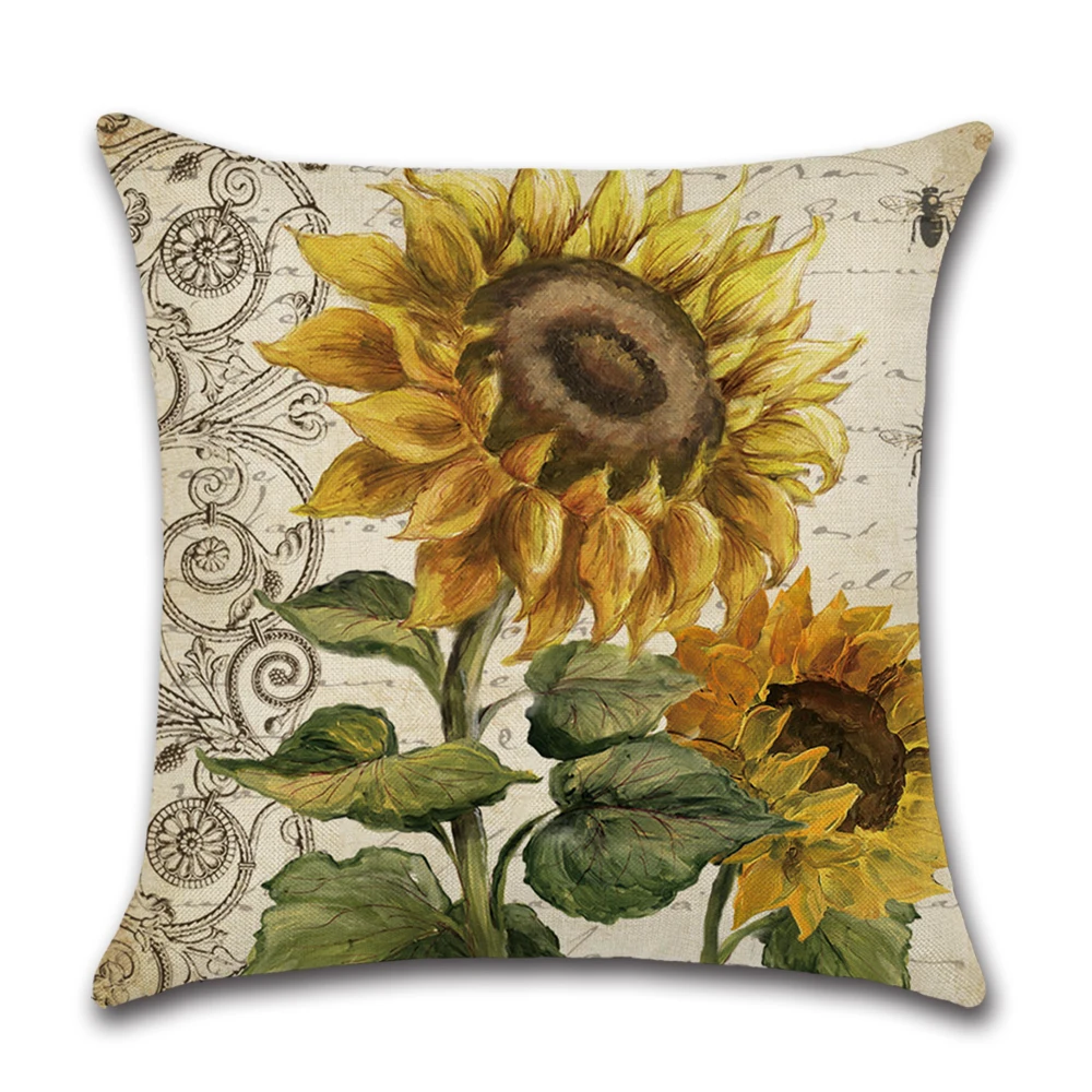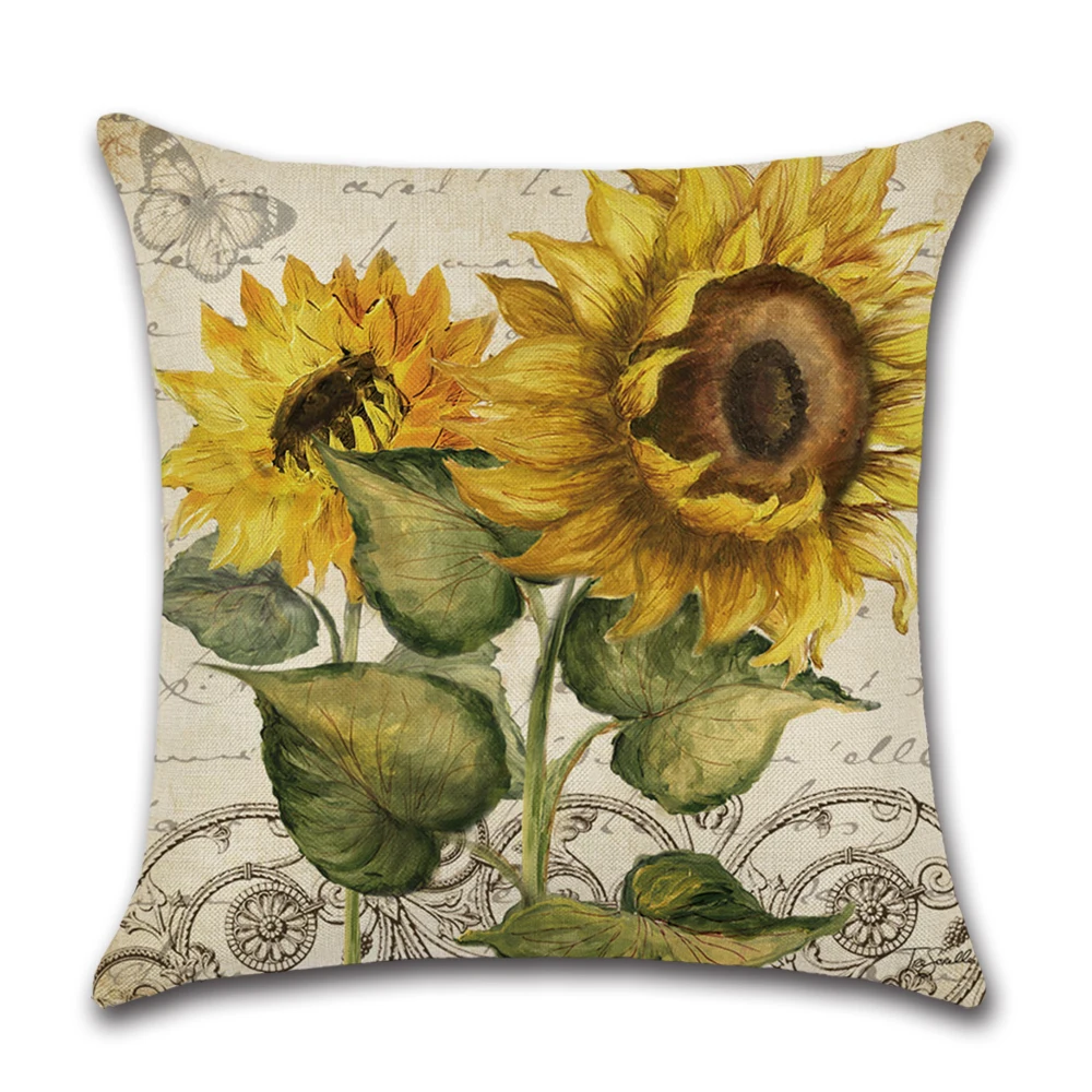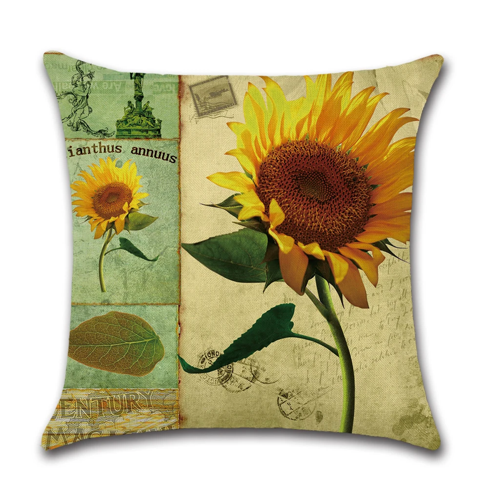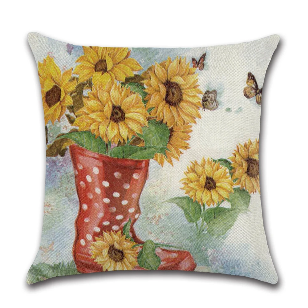 Наволочка в стиле ретро с принтом подсолнухов и дождевых сапог, льняная наволочка, декоративная подушка, наволочка с желтыми цветами, растениями, декоративная наволочка для автомобиля