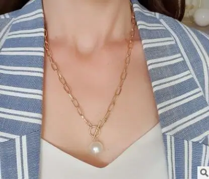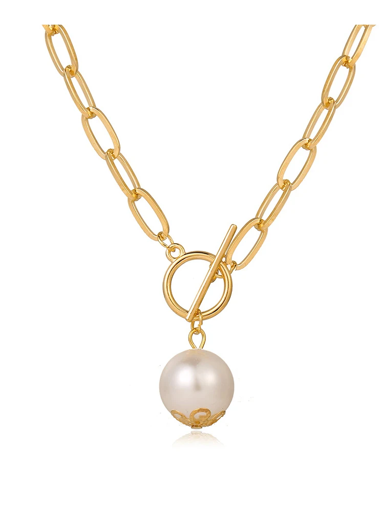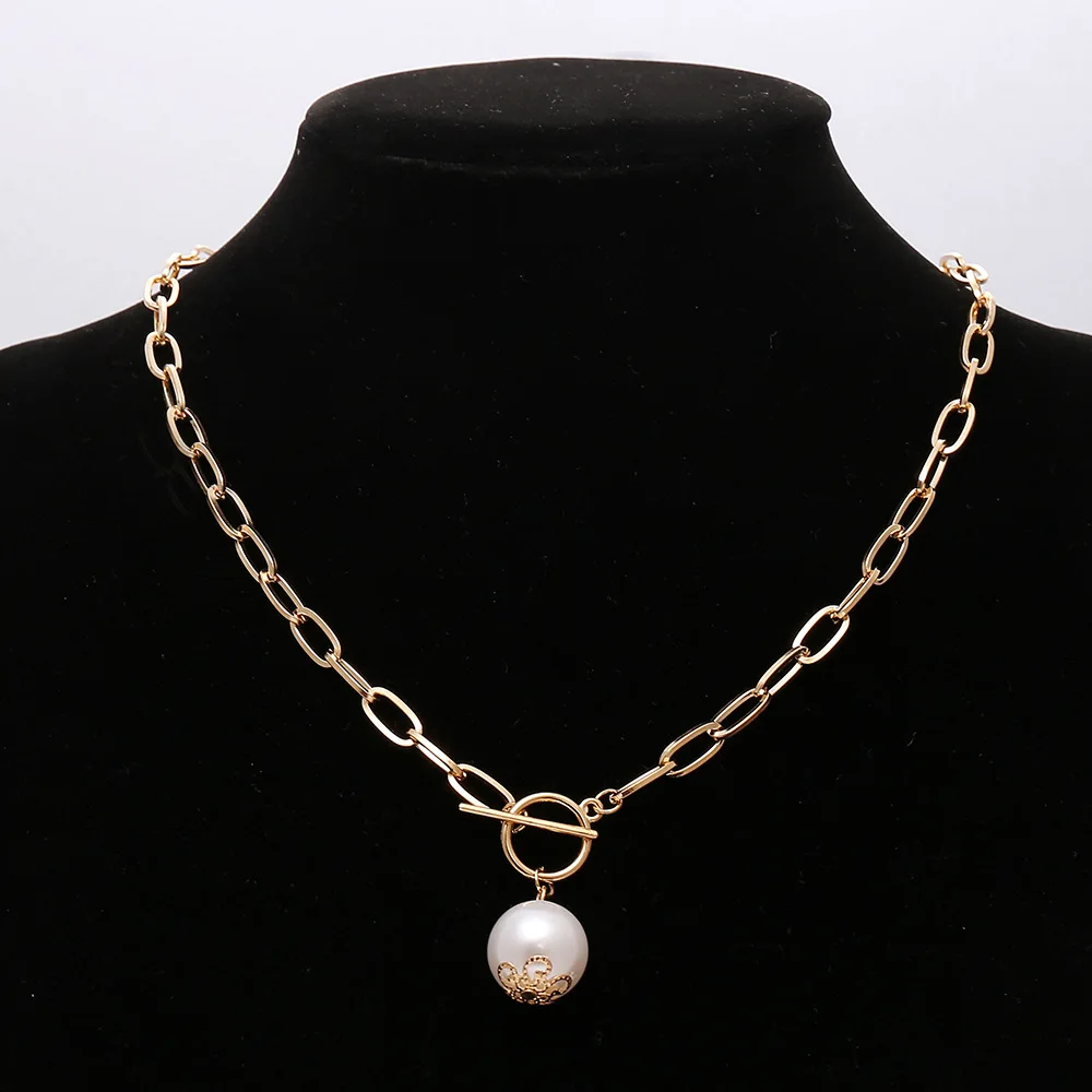 2021 Новое Женское Ожерелье винтажная металлическая цепочка OT Пряжка имитация жемчуга кулон ожерелье