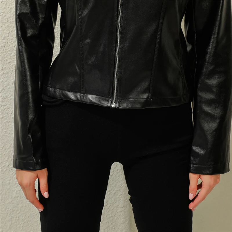 Куртка женская из искусственной кожи, повседневная приталенная мягкая Байкерская верхняя одежда из искусственной кожи, базовая уличная одежда