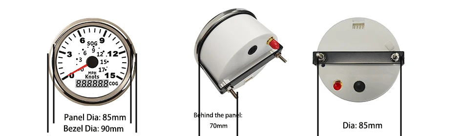 -Фиксирующий Размер: 85 мм (3-3/8 ")-С указанием диапазон: 0-15Knots 0-35Knots 0-70Knots-Рабочее напряжение: 9-32 в (12 В/24 В)-Подсветка: красный-Функции:Игла показывает текущие скоростиCOG --- подача заявки на направление движения-Режим работы: ЖК-дисплей, шаговый двигатель