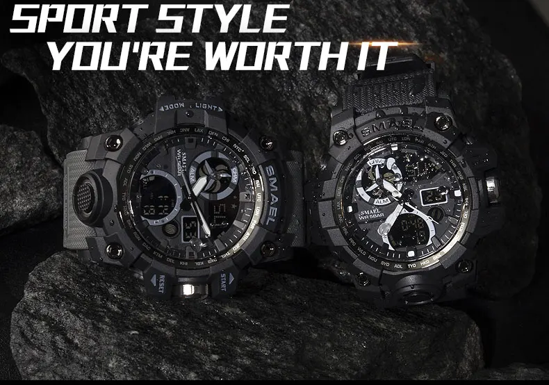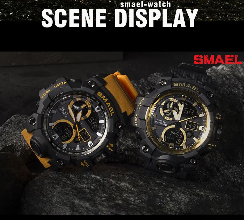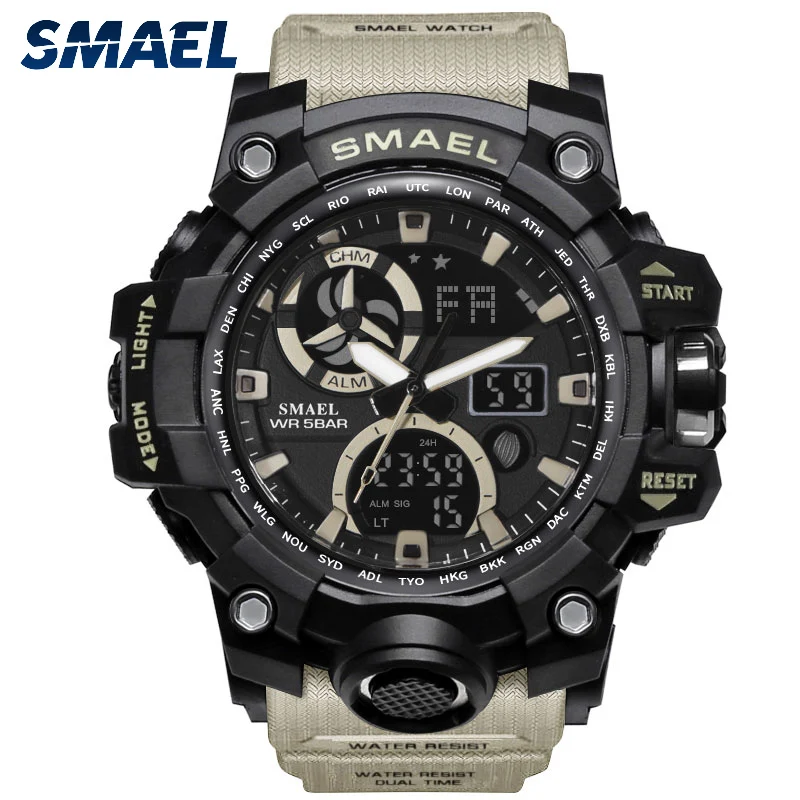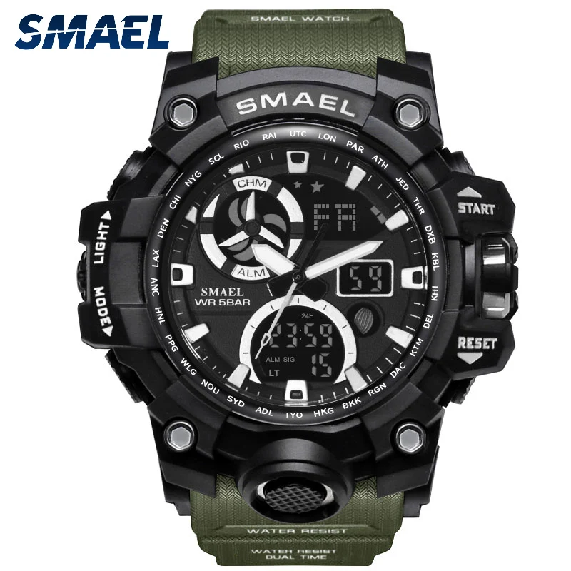 Для мужчин спортивные часы 50 м Водонепроницаемый наручные светодиодный кварцевые часы мужские часы relogios masculino SMAEL цифровые спортивные часы Для Мужчин's