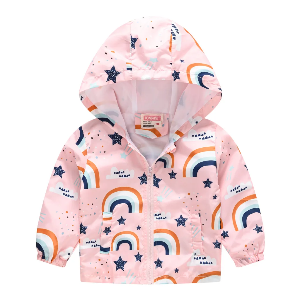 Куртка с капюшоном для мальчиков и девочек, осенняя ветрозащитная к...