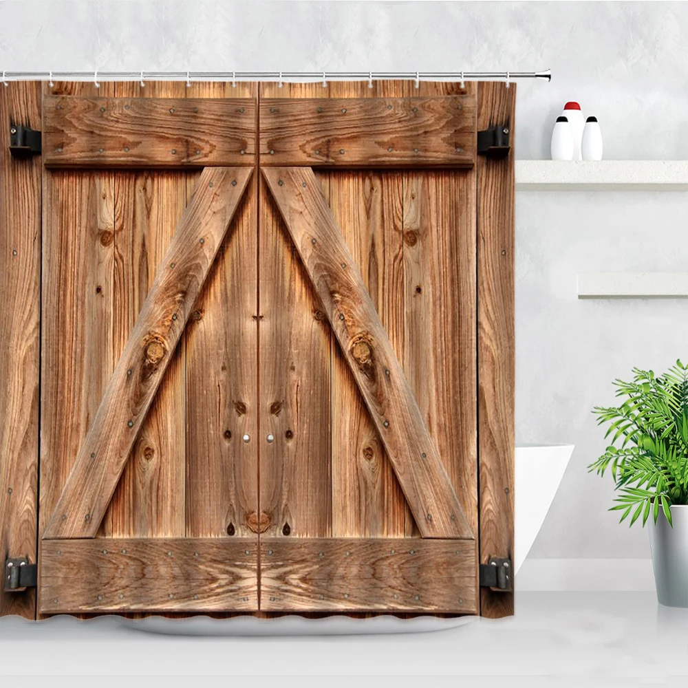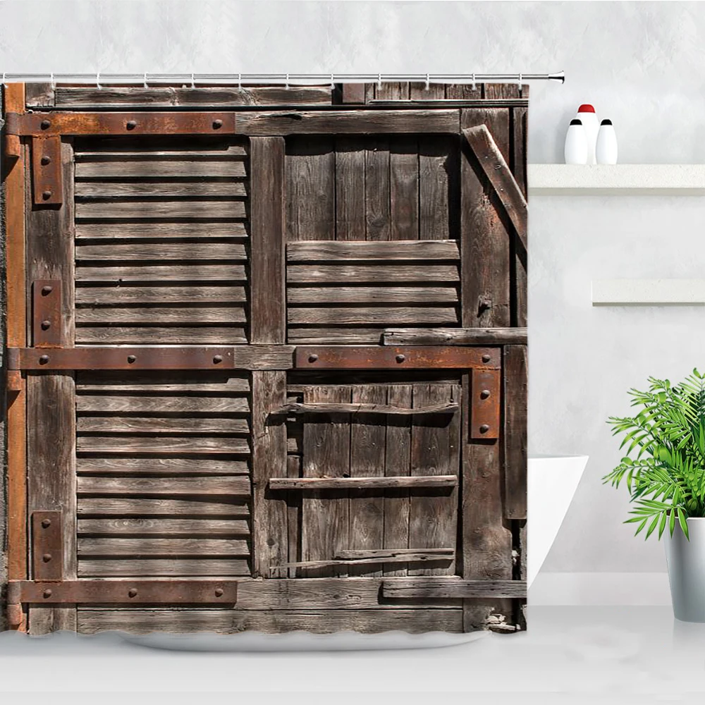Ретро деревенская деревянная дверь, занавеска для душа, s винтажная...