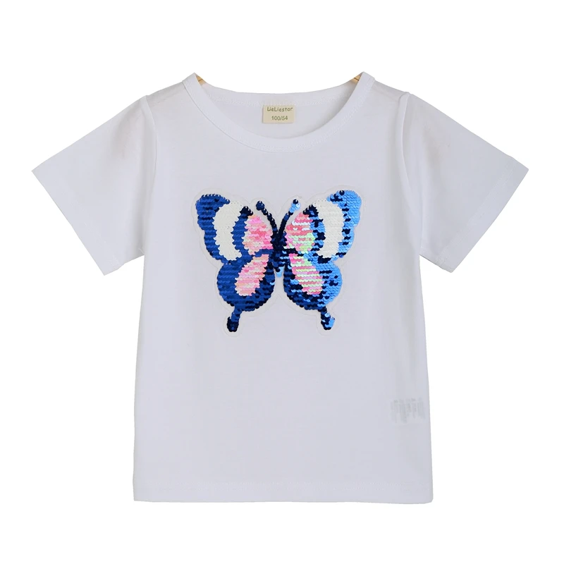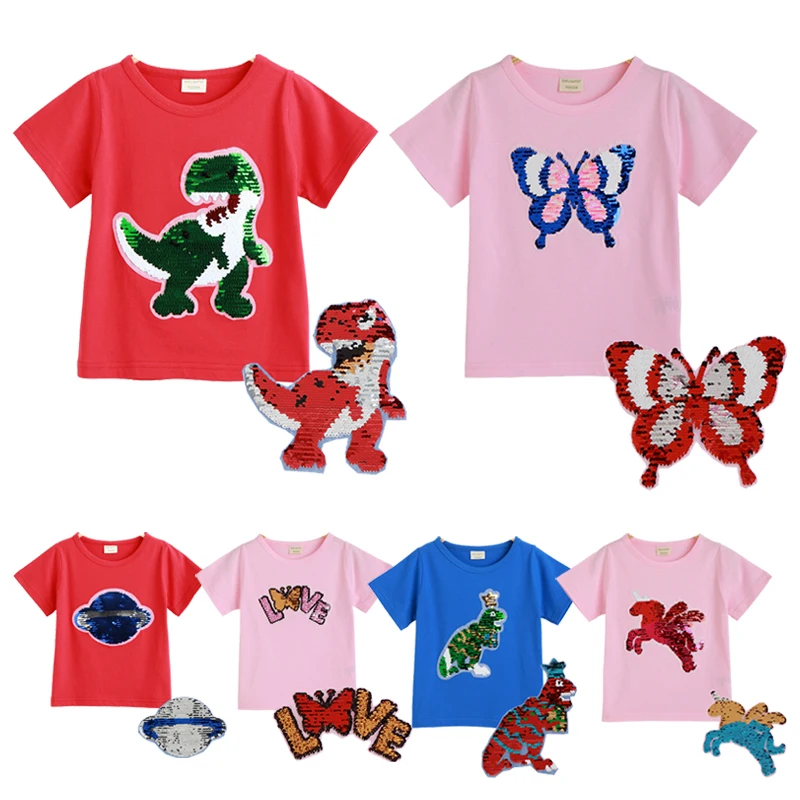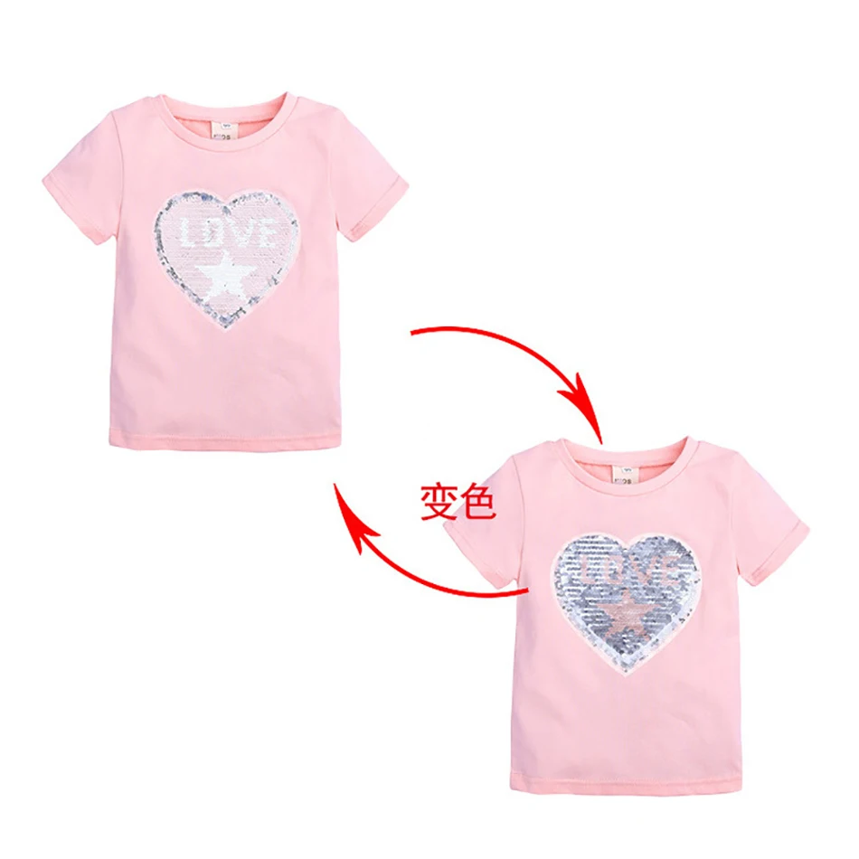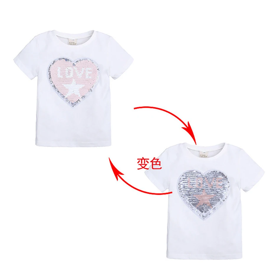 Детская футболка с пайетками, хлопковая Футболка с изображением волшебных пайеток, Повседневная модная футболка для девочек и мальчиков, 1 шт., лето 2021