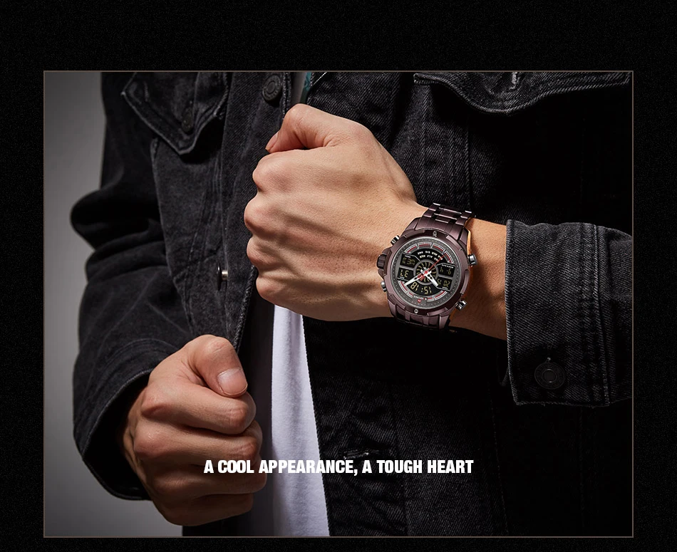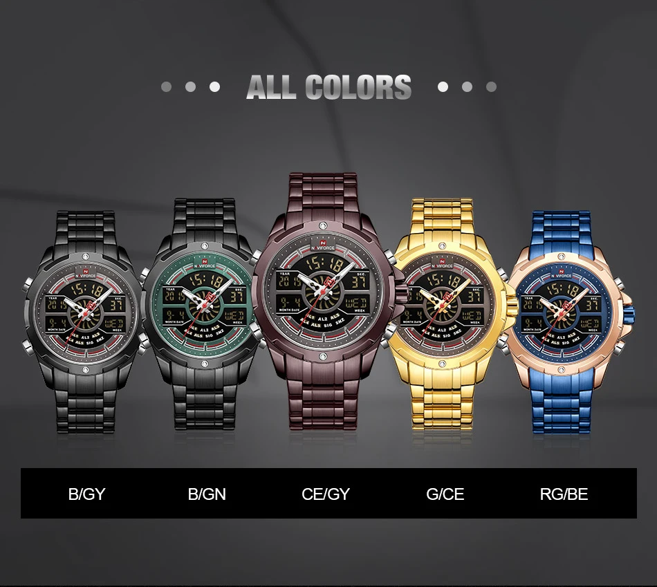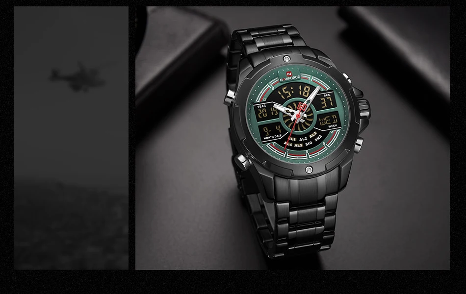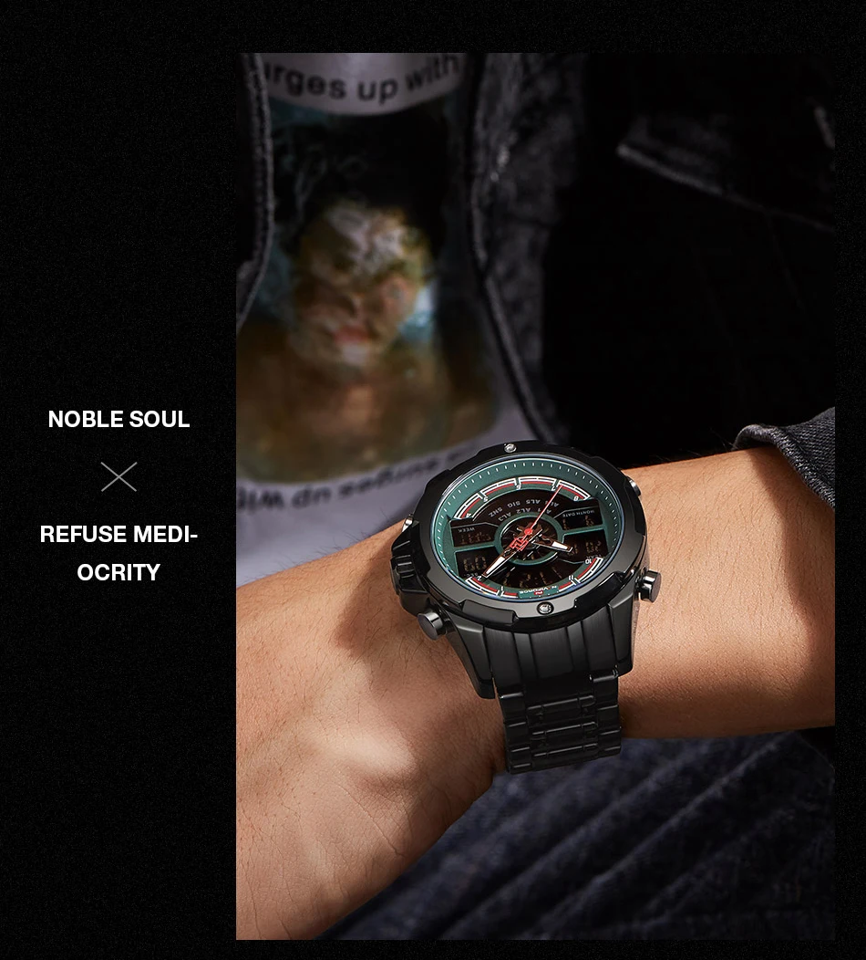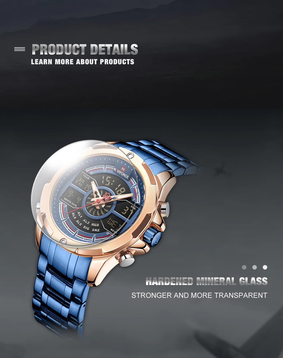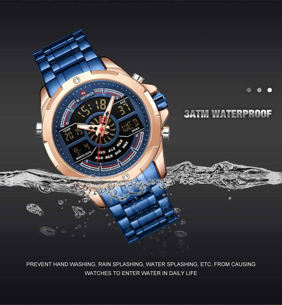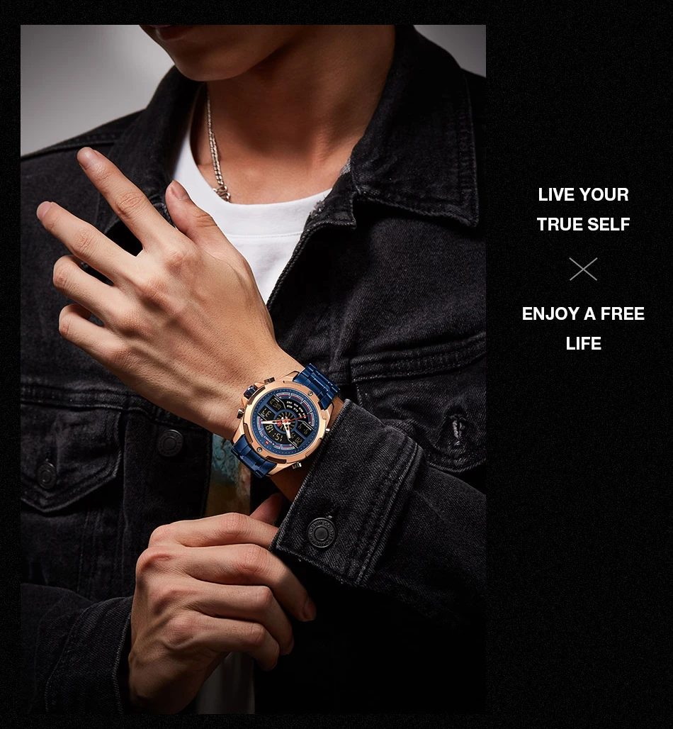 NAVIFORCE Relogio бренд с большим циферблатом, двойной дисплей, кварцевые наручные часы, повседневные часы из нержавеющей стали, мужские цифровые часы с будильником, светящиеся часы