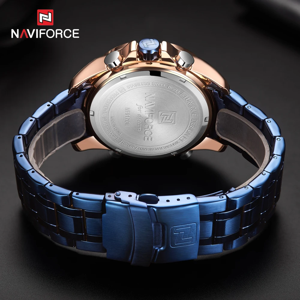Мужские спортивные кварцевые часы NAVIFORCE, полностью стальные вод...