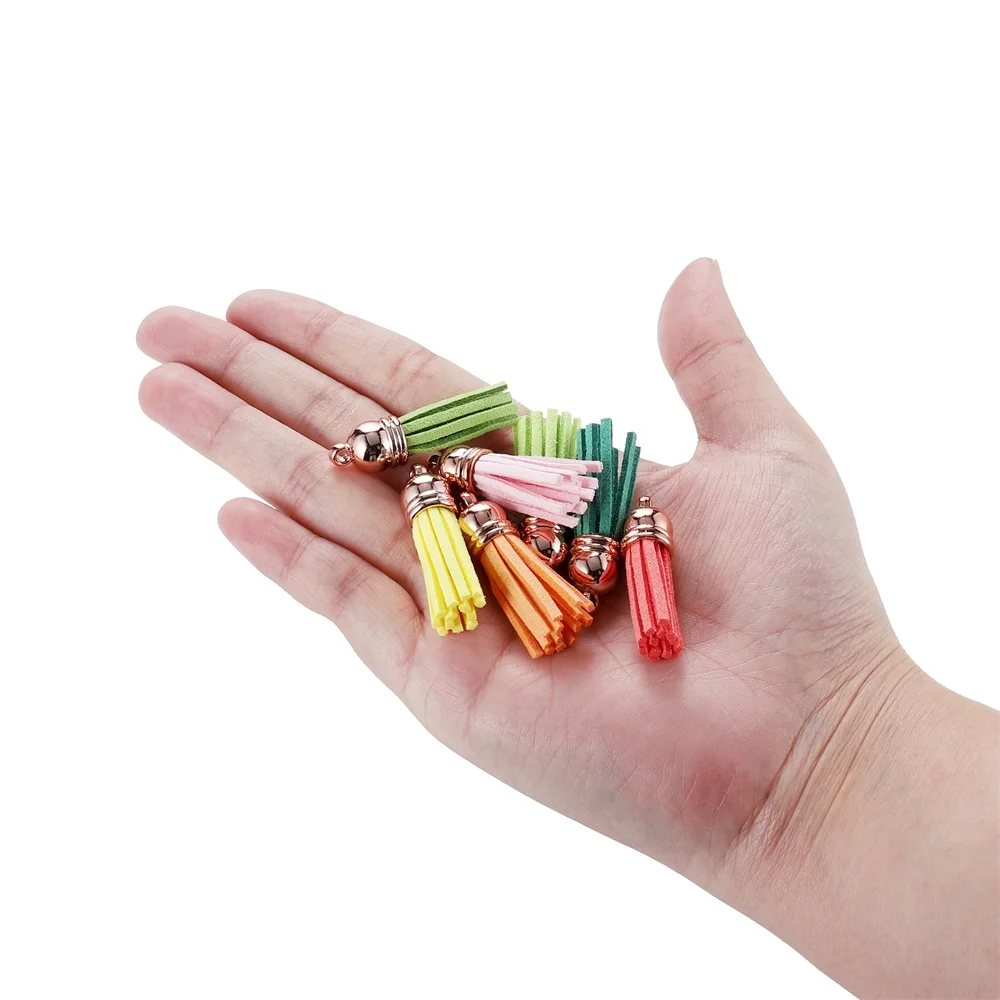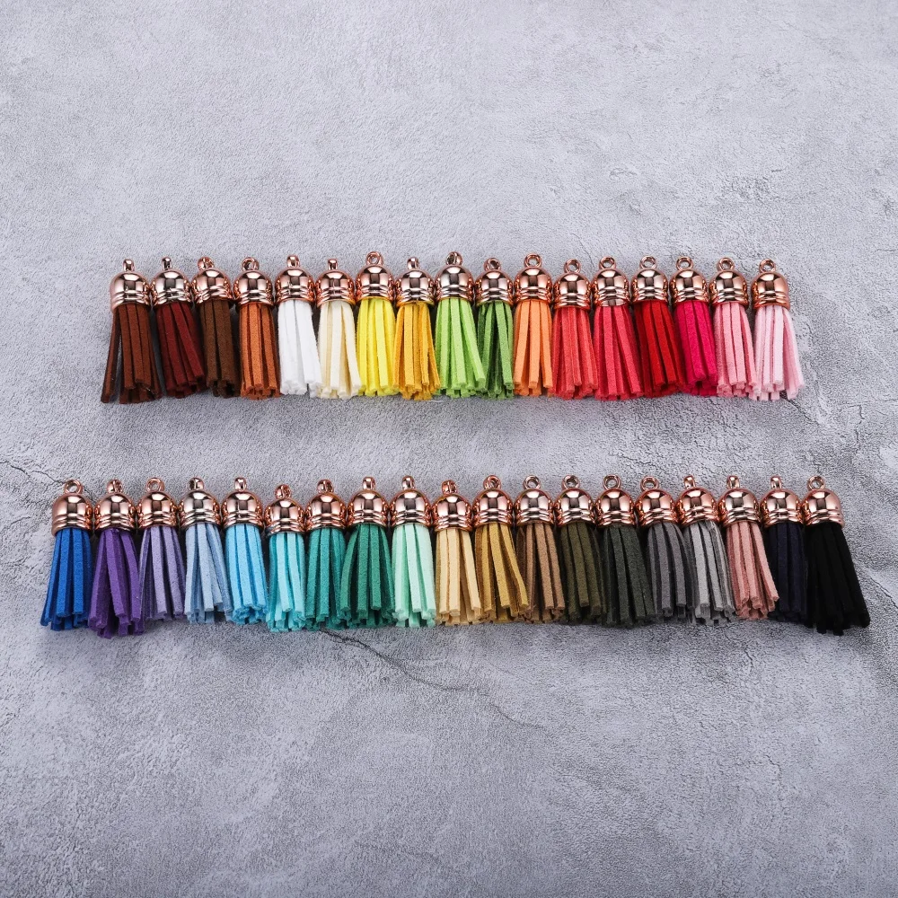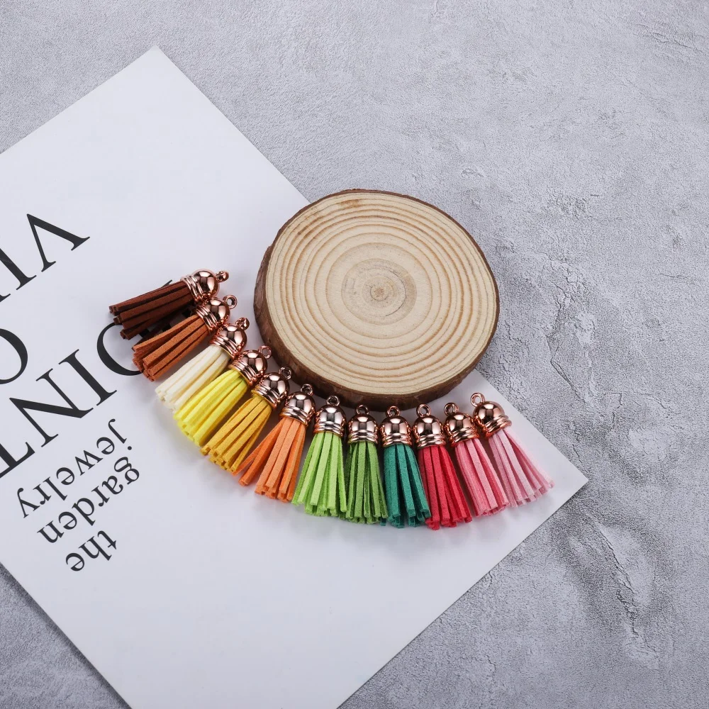 20 шт., 38 мм, кожаный брелок с бахромой, ремешок, розовое золото, ювелирное изделие, бахрома, замша, кисточка для DIY, брелок, ювелирные аксессуары