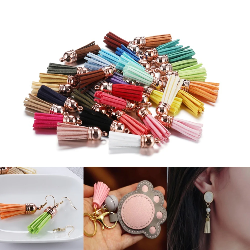 Брелок с кожаной кисточкой и бахромой для ключей сделай сам, замшевая бахрома из розового золота, аксессуары для ювелирных изделий, 38 мм, 20 шт.