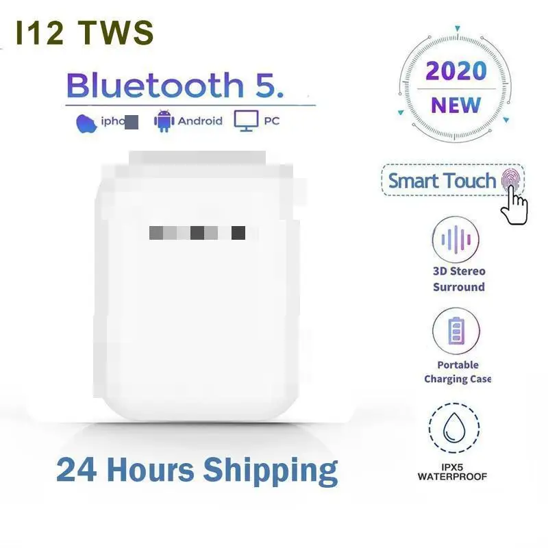 Беспроводные наушники i12, TWS, Bluetooth 5,0, с сенсорным управлением, спортивные стереонаушники с супер басами, наушники-вкладыши для iPhone, Huawei, Samsung, смартфонов