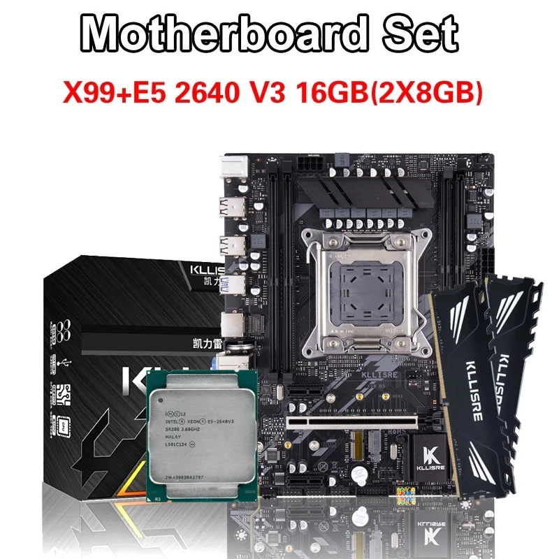 Kllisre X99 комплект материнской платы Xeon E5 2640 V3 LGA 2011-3 ЦП 2 шт. X 8 ГБ = 16 Гб 2666 МГц DDR4 память
