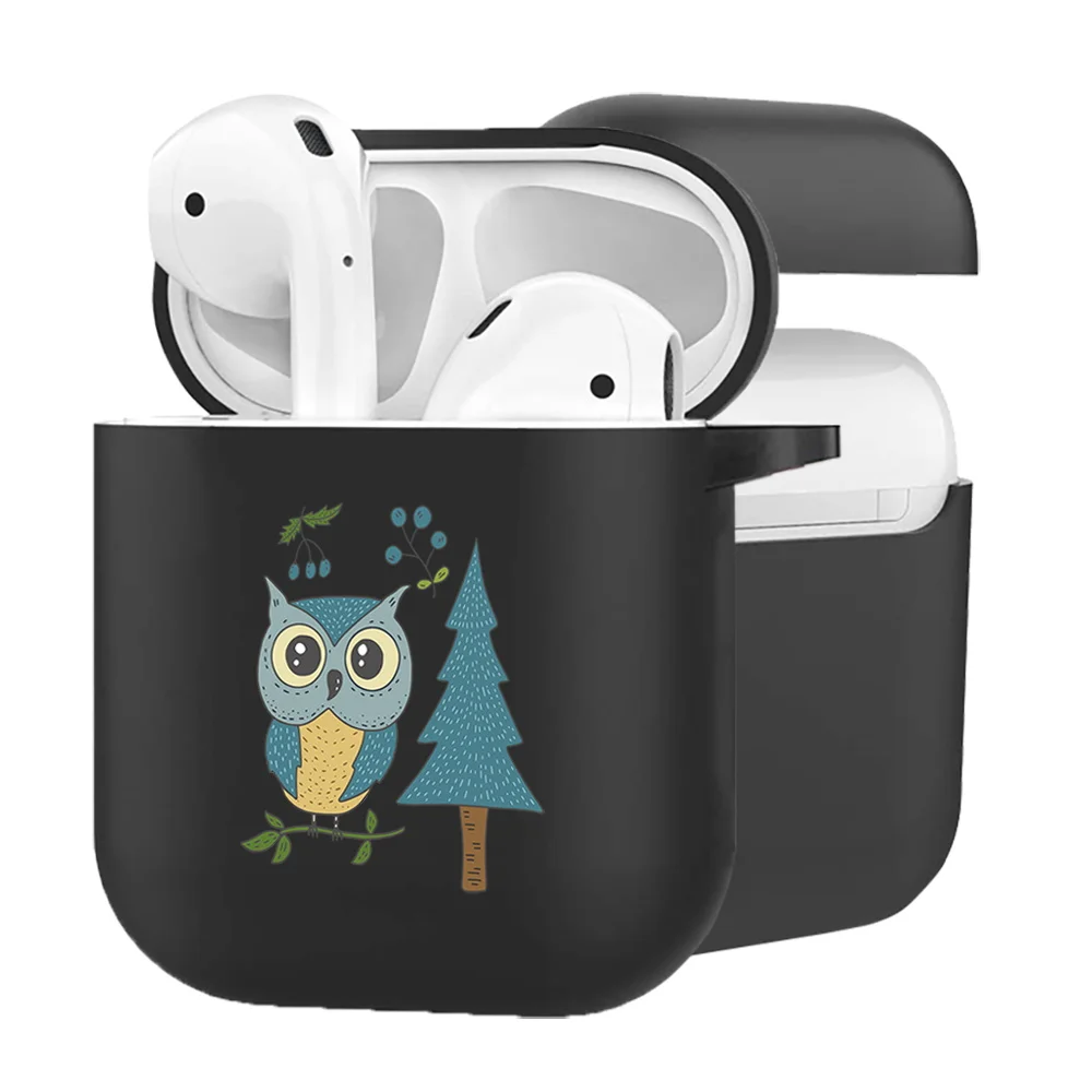 Матовый черный мягкий силиконовый чехол с рисунком для Apple Airpod...