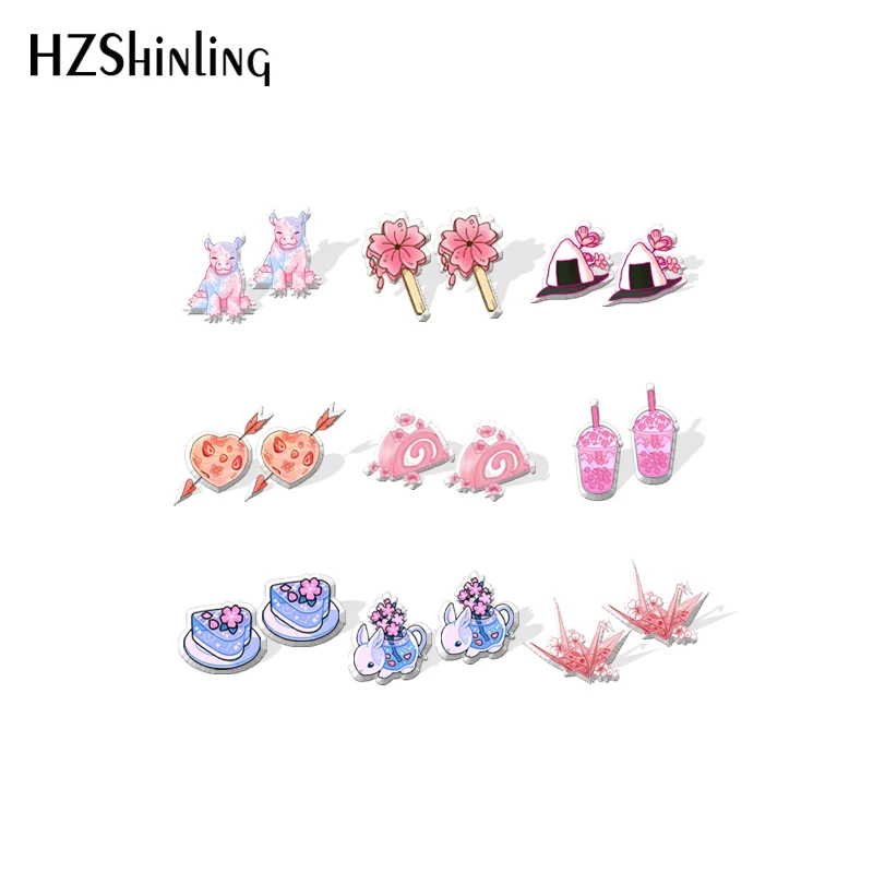 Новинка 2021, серьги-гвоздики серии Sakura, суши, желе, торт, раньше, эпоксидная смола, фотография