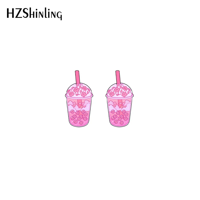 Акриловые серьги-гвоздики с изображением милых десертов, молочных к...