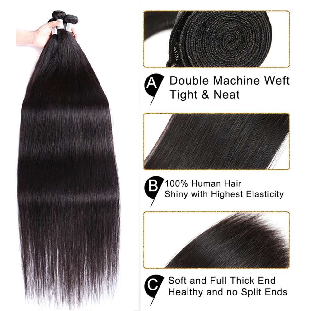 Прямые человеческие волосы пряди с фронтальной 13x4 кружева закрытие с пряди, пряди с закрытием 13x4 бесплатная часть закрытие 4x4 застежка и пряди