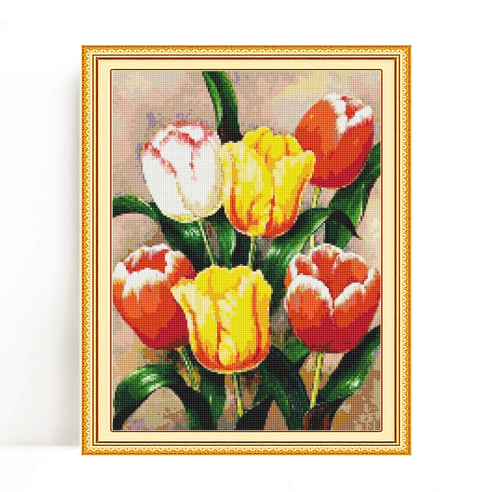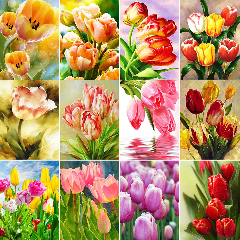 5D DIY алмазная живопись Тюльпан Цветок квадратныйкруглый набор со стразами Вышивка Набор для вышивания крестиком, украшение для дома, подарок
