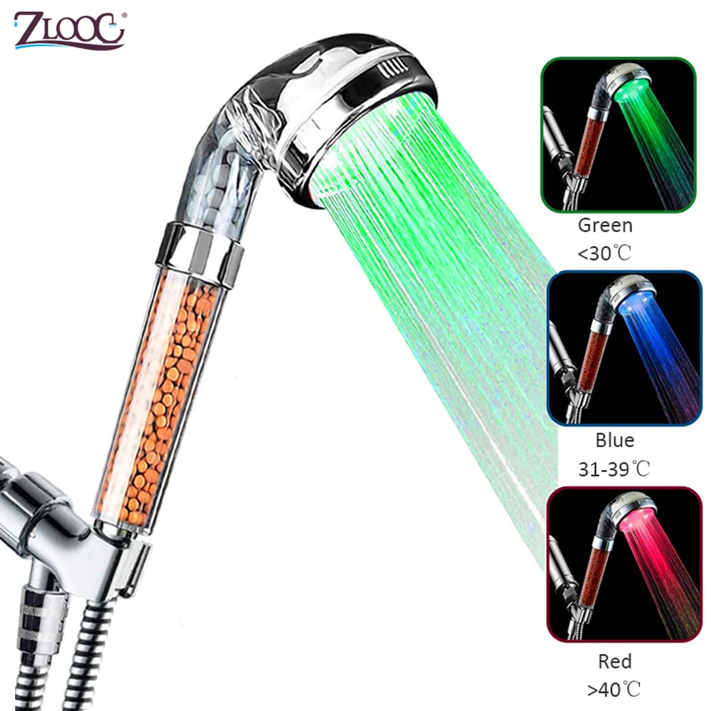 Zloog Светодиодные Цвета: красный/синий/зеленый свет меняющаяся Душевая насадка Без аккумулятора Автоматическая ионный фильтр камень тропический душ для ванной душевая головка