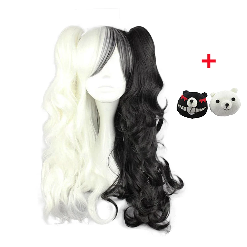 Парик для косплея для женщин Dangan Ronpa Monokuma, термостойкие волосы из синтетики, с длинными вьющимися хвостами, для костюма из данганронпа, 2020
