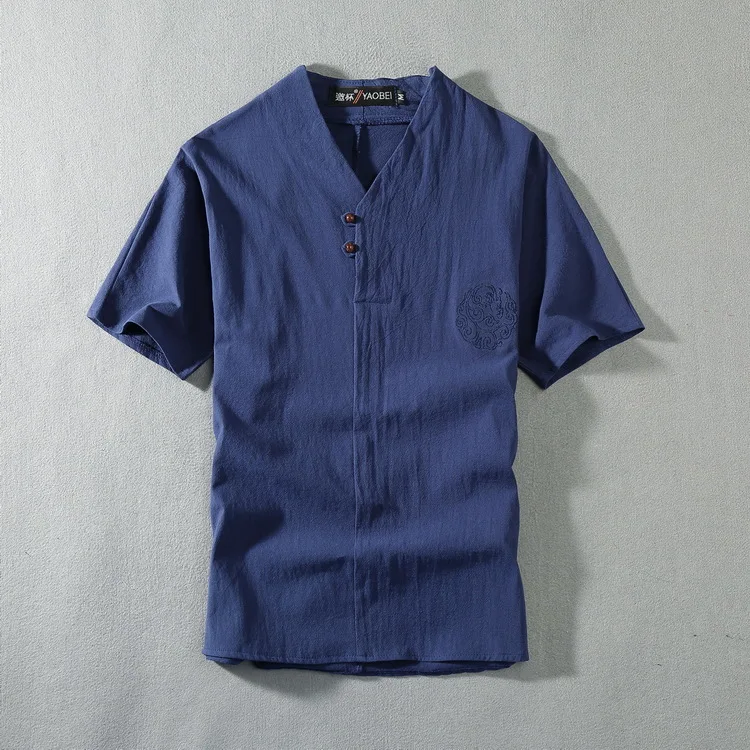 Футболка мужская с коротким рукавом и брюки в китайском стиле, винт...