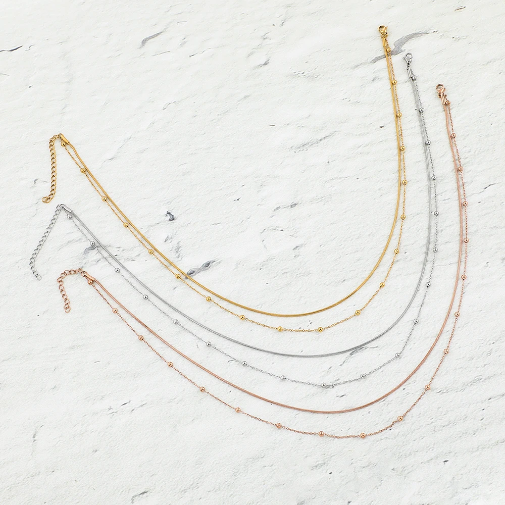 Двухслойный Нержавеющаясталь Гладкий колье в виде змеи из бисера минималистское ожерелье как подарок на день матери