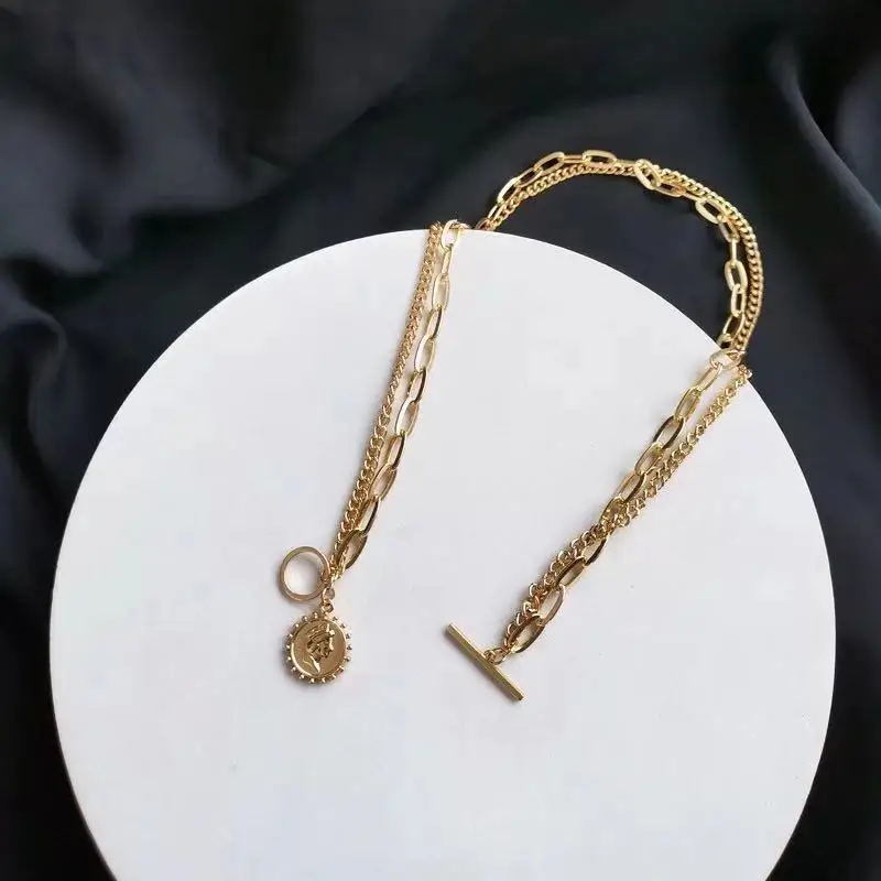 Двойная королева ожерелье из золотых монет индивидуальное нишевое ожерелье высокое качество Темперамент Европейский и американский трендовые ожерелья