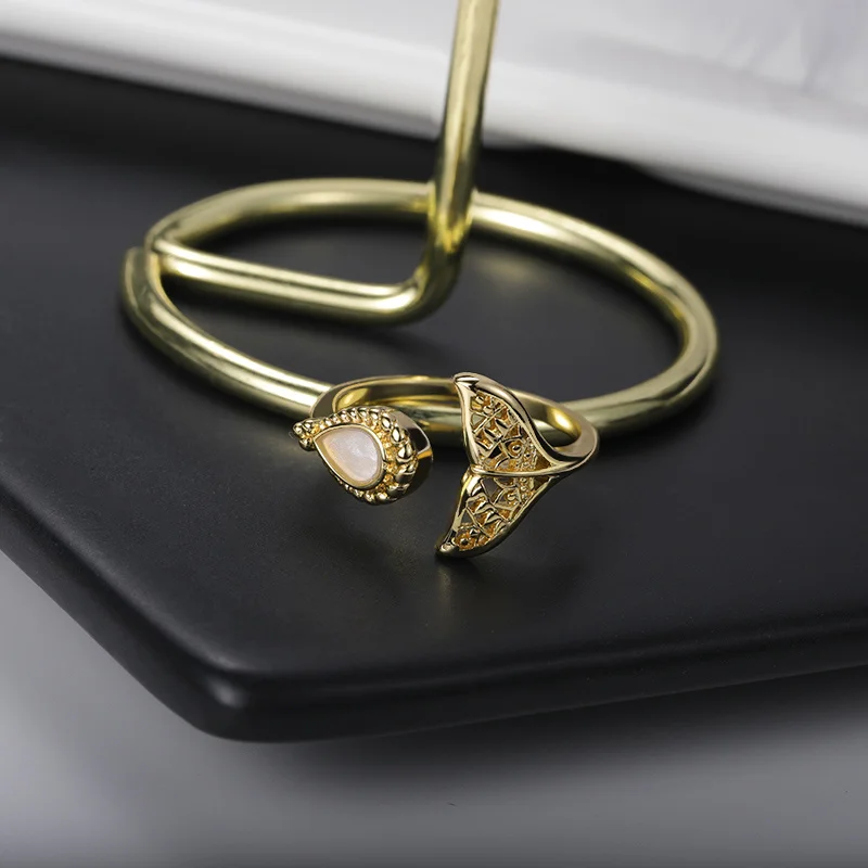 Модное золотистое серебристое кольцо с вырезом в виде хвоста русалки для пары, модное свадебное регулируемое кольцо, подарок для лучшего друга