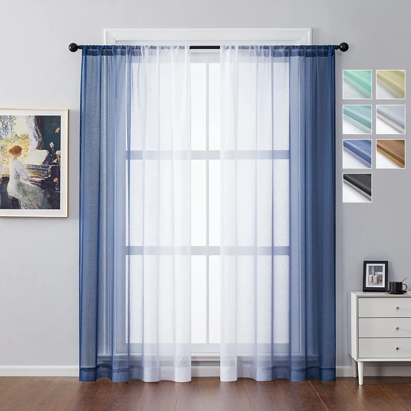 Однотонные современные тюлевые шторы из прозрачной вуали для гостин...