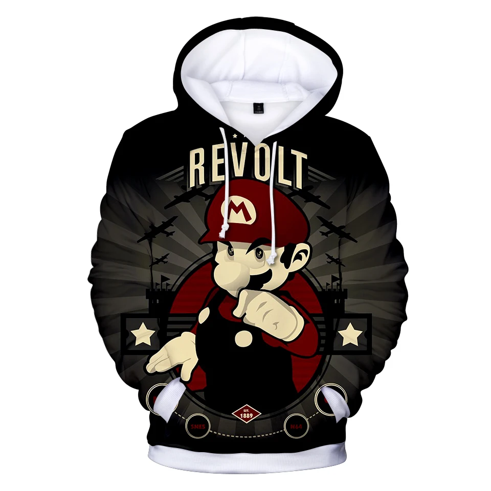Толстовка с капюшоном для мальчиков и девочек, 3D свитшоты с принтом Супер Марио, худи в стиле хип-хоп, спортивный костюм, одежда для Марио