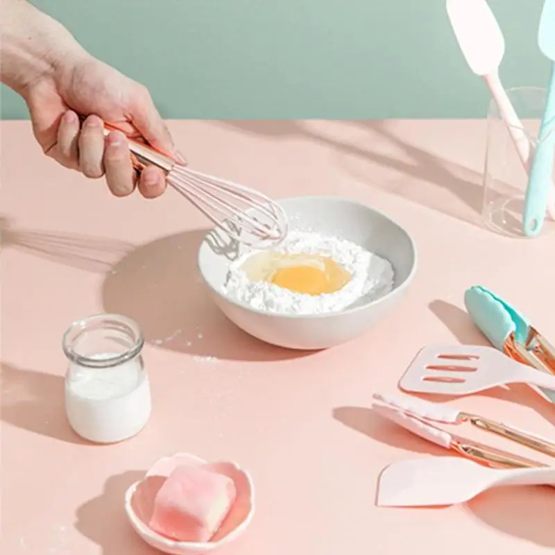 Особенности:Теплые цвета, ультра-высококачественная кухонная посуда для выпечки изготовлены из пищевого силикона, высокая термостойкость очень практична.Материал:Силикон, нержавеющая стальПосылка:1 * зажим для еды/скребок для утки/скребок для языка утки/венчик