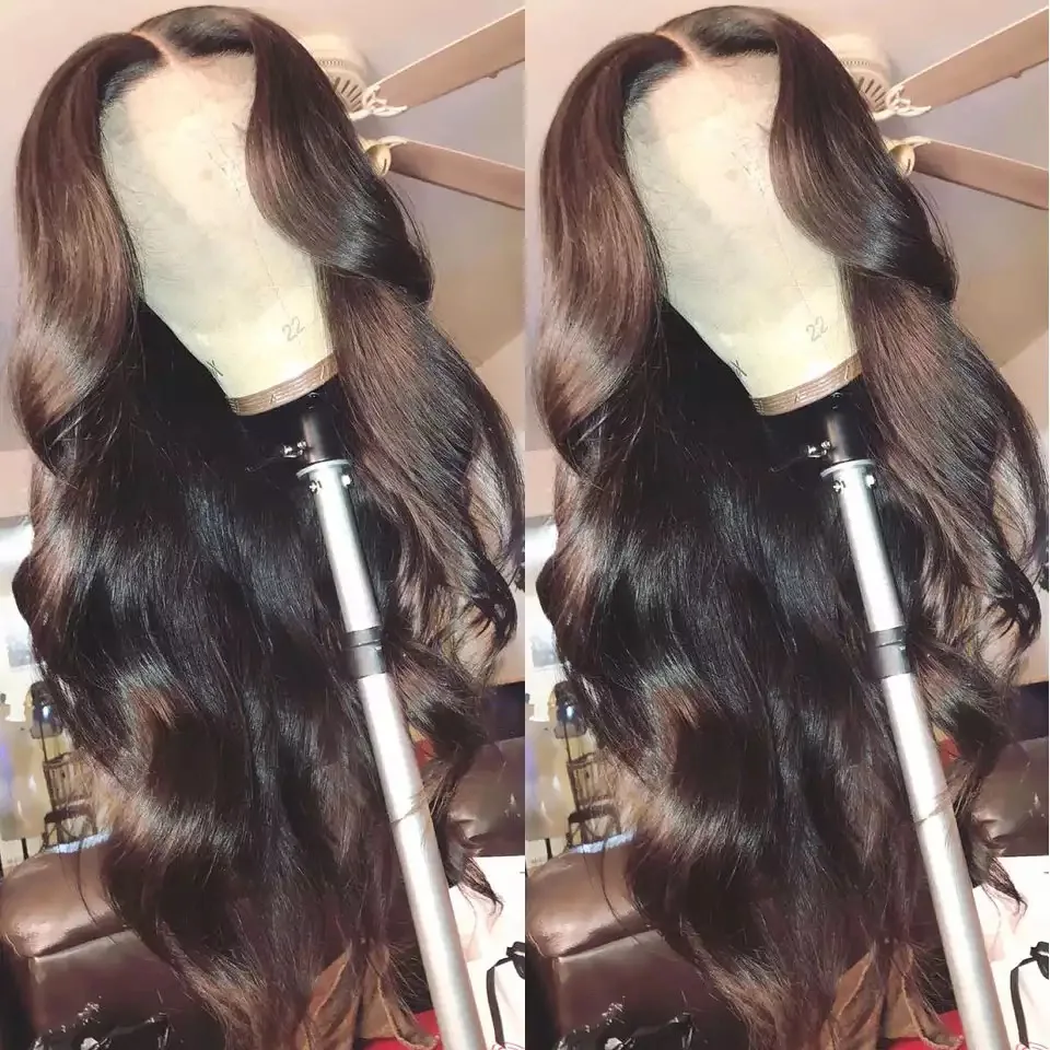 Перуанские волнистые передние парики на сетке, средняя часть, брази...