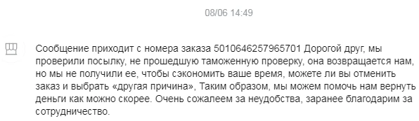 С этой покупкой я столкнулся с самым настоящим сумасшествием продавца. Во-первых, товар не отправлялся несколько дней. Потом, когда отправился и мне был предоставлен уже трек-номер для отслеживания, по внутренней почте АлиЭкспресс приходит сообщение от продавца с требованием отменить заказ (!). Отменил. А на следующий день приходит следующее письмо с совершенно противоположным содержанием. Уже смешно. Но когда в итоге оказалось, что товар был отправлен совершенно в другой город и совершенно другому человеку, стало уже не до шуток. Открыл спор, деньги продавец согласился вернуть, но ждать мне их возврата (по правилам) до 20 суток. Скриншоты всего этого сумасшествия - ниже. Решайте сами, нужно ли вам покупать что-либо у этого продавца.