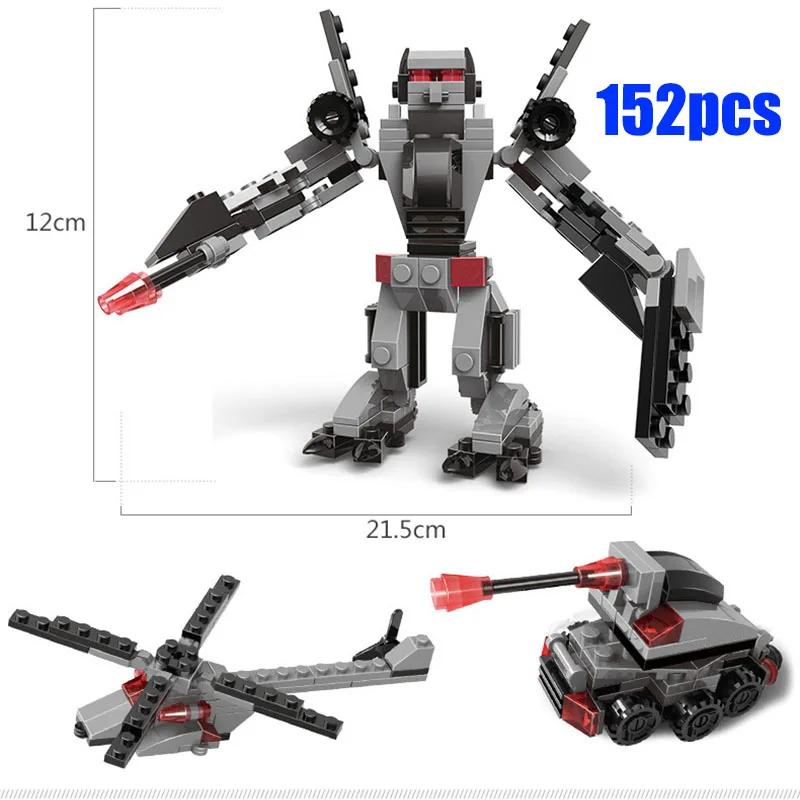 Новейшая игрушка робот-конструктор трансформации Маленькие роботы могут трансформироваться в 3 стиля Большие роботы могут трансформироваться в 2 типа Лучшая игрушка и подарок для мальчиков Блоки совместимы с большинством ведущих брендов 100% новый бренд, высокое качество Изготовлен из АБС-пластика, 100% экологически чистый материал Размер, как показано на фотографии Упаковано в хорошая подарочная упаковка, может быть подарком или перепродажей