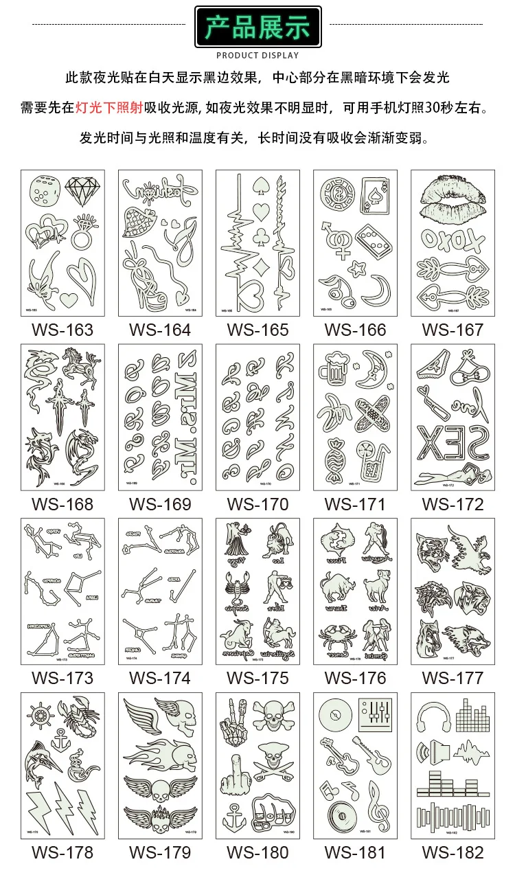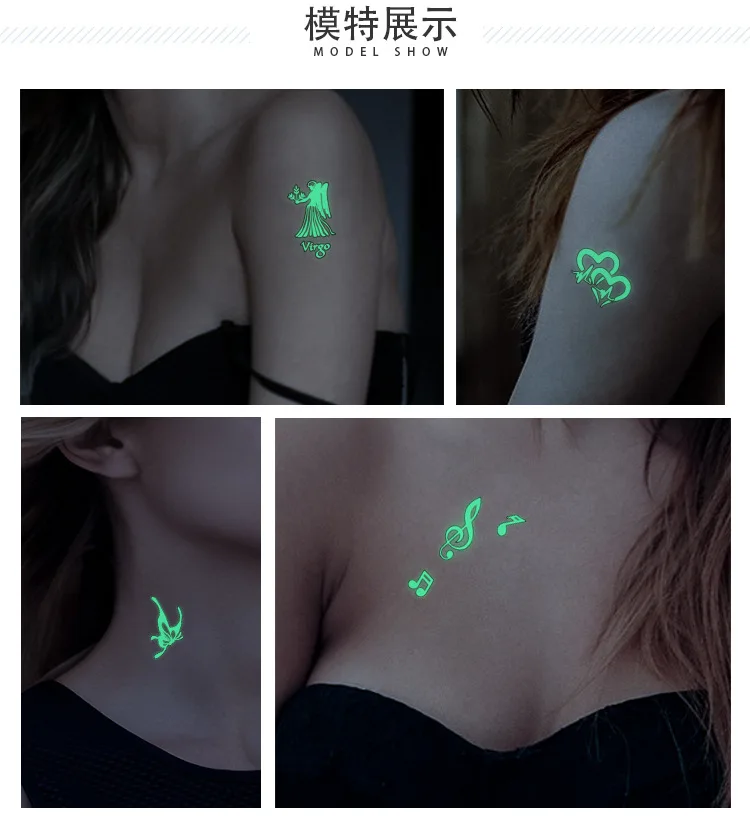 Светящаяся татуировка, поддельная татуировка, темно-водонепроницаем...
