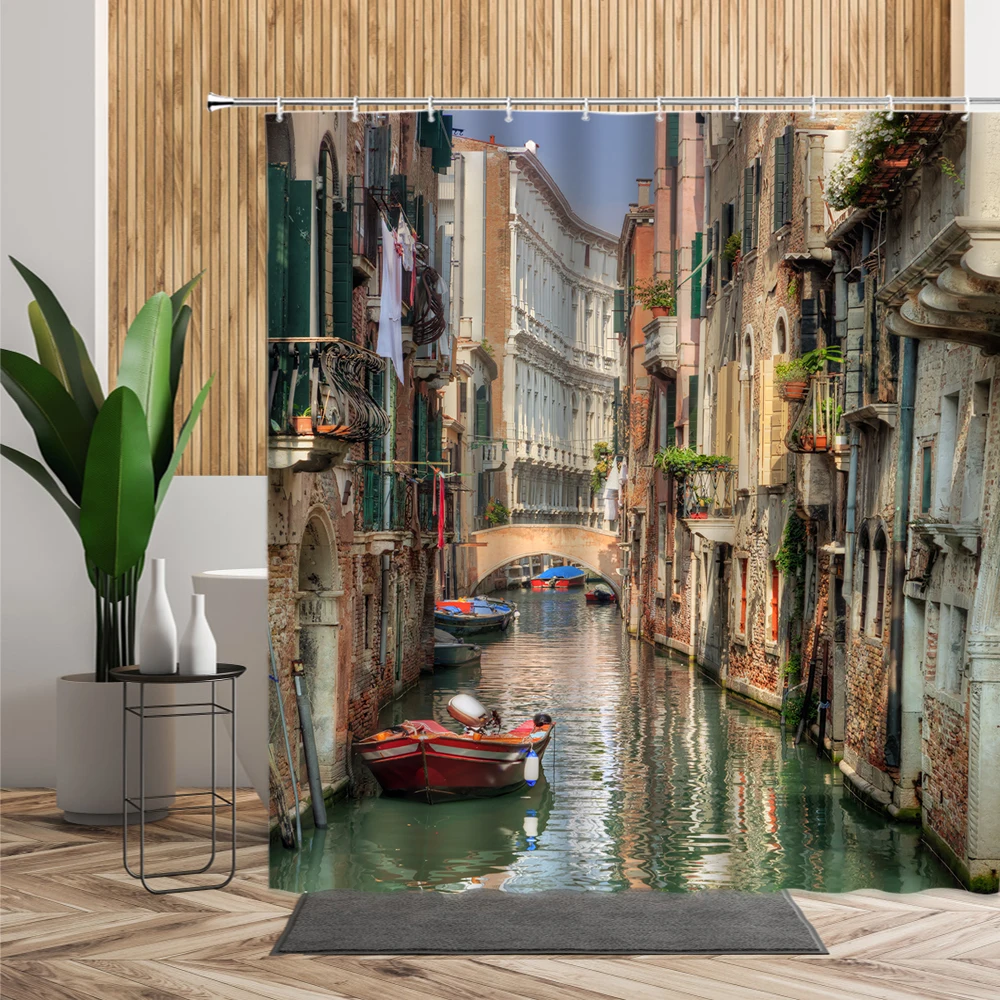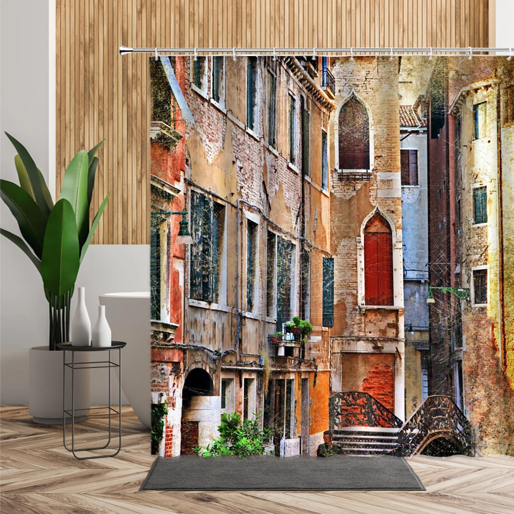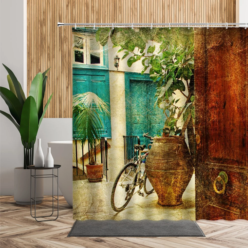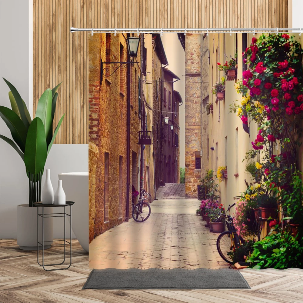 Занавеска для душа в стиле ретро уличный пейзаж, садовый занавес с ...