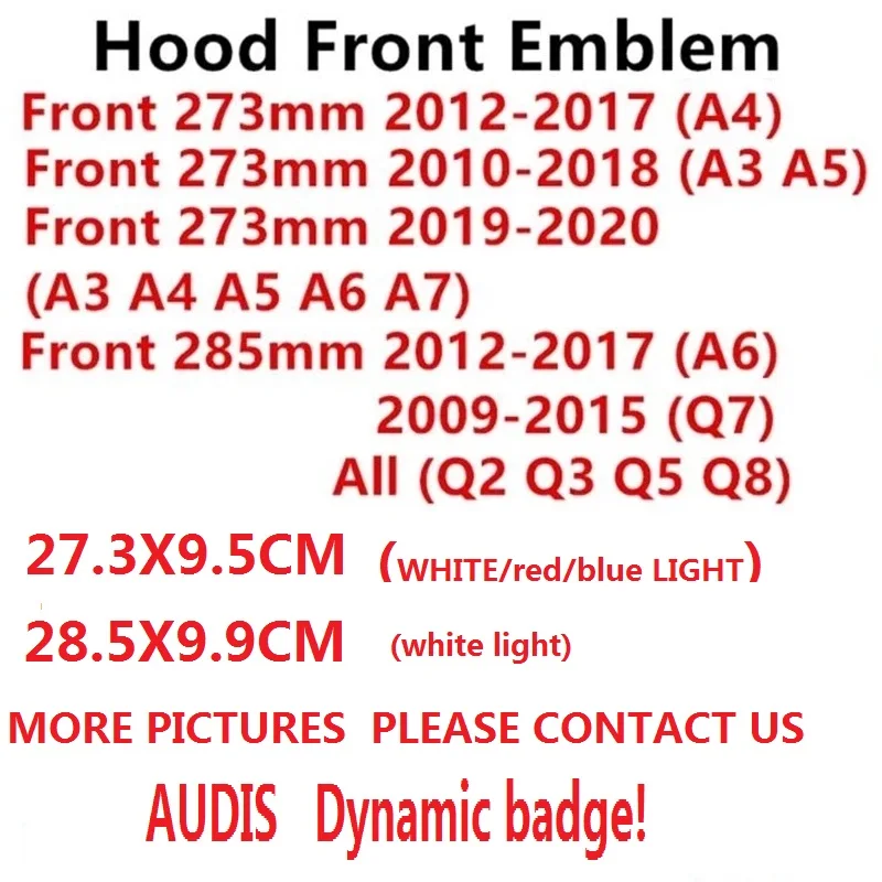 Автомобильная светодиодная решетка 4D с подсветкой, светодиодный логотип Bl для Audi A1 A3 A4 A5 A6 A7 Q3 Q5 Q7 TT R8, передняя решетка, эмблема, логотип 27,3 см * 9,5 см