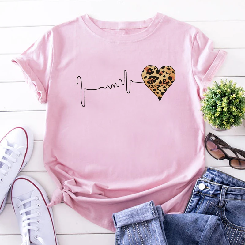 Летняя модная футболка с принтом губ и леопардовой расцветки, женские топы, базовые футболки с круглым вырезом, смешная футболка для девочек с поцелующимися леопардовыми губами