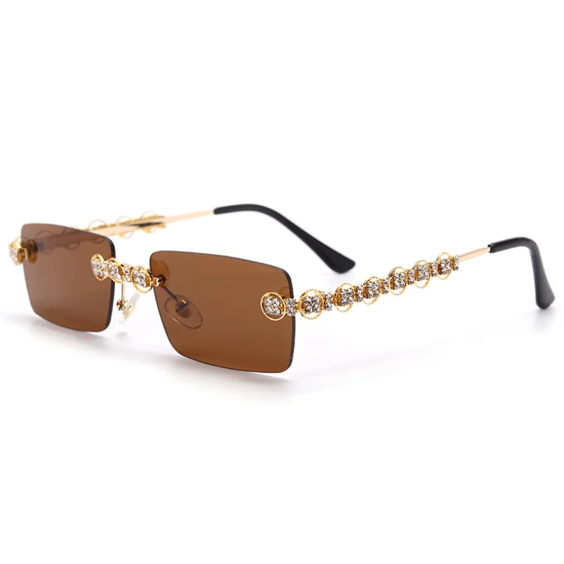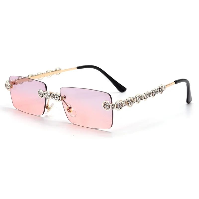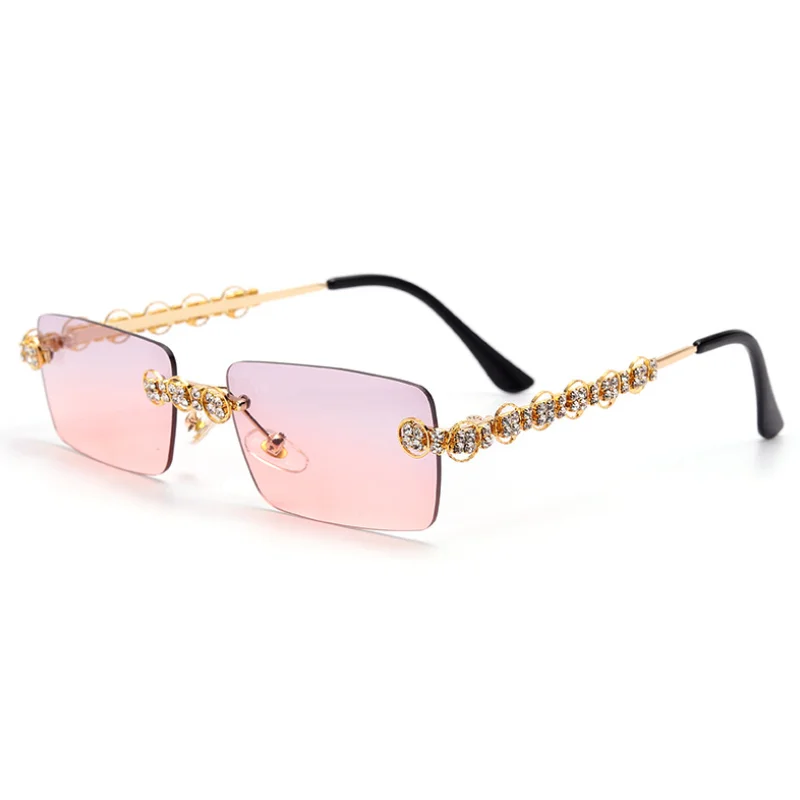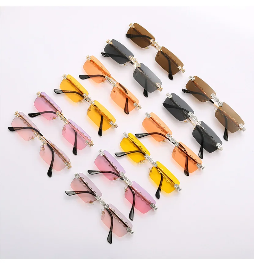 Солнцезащитные очки без оправы UV400 для мужчин и женщин, прямоугольной формы, с градиентными линзами, в стиле ретро, без оправы, 2020
