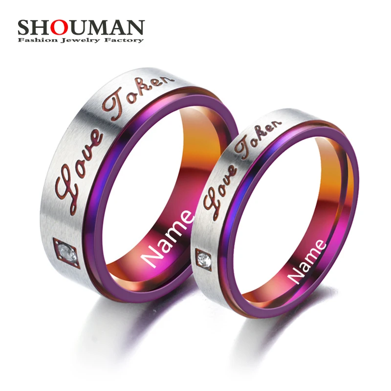 Кольца SHOUMAN из нержавеющей стали для мужчин и женщин, простые свадебные украшения фиолетового цвета с 1 кубическим цирконием, с индивидуальной гравировкой имени, подарок