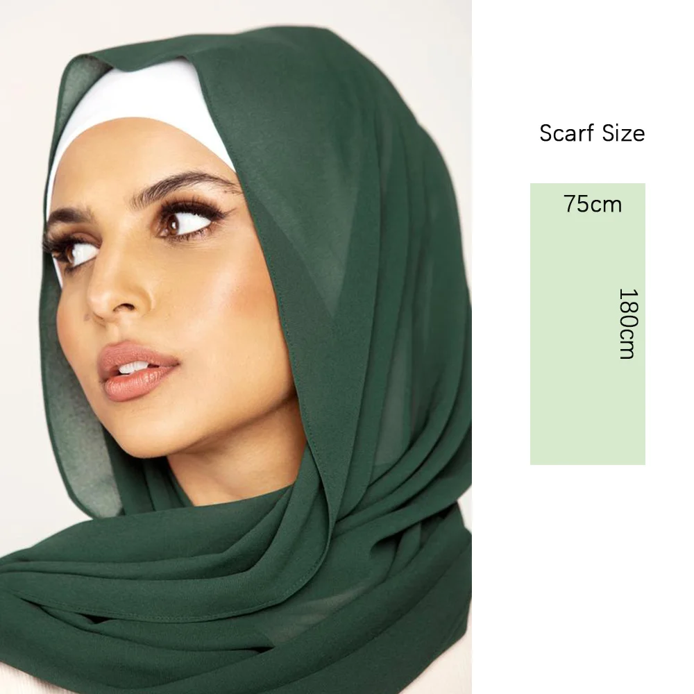 Женский шифоновый хиджаб-шарф, однотонный, 56 цветов