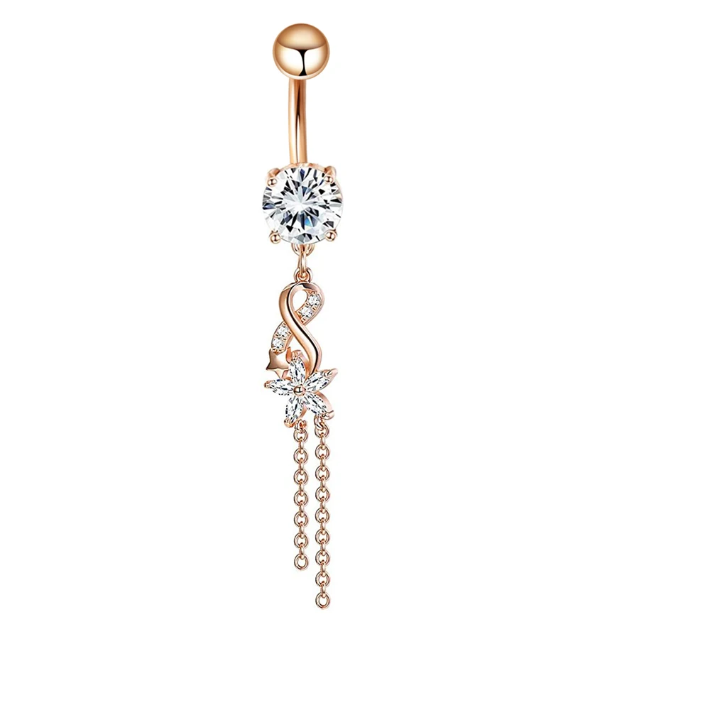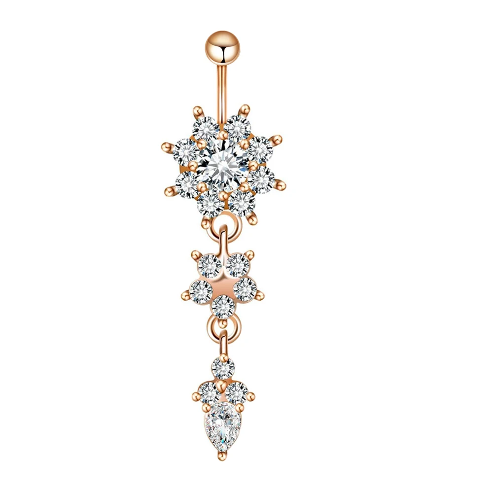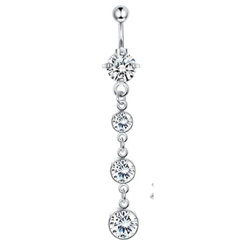 14 г Нержавеющаясталь мотаться пупок колец для Для женщин живота пирсинг CZ серьги инкрустированные длинные болталась бар ореха тела Ювелирное кольцо для пупка