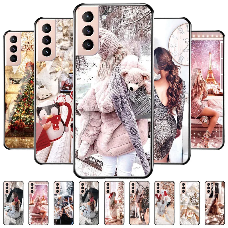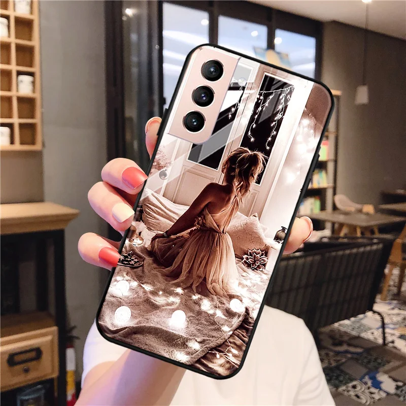 Чехлы из закаленного стекла для Samsung S21 Plus, роскошный чехол на Samsung S21 Ultra S30 S 21, защитный чехол для сотового телефона, задняя крышка