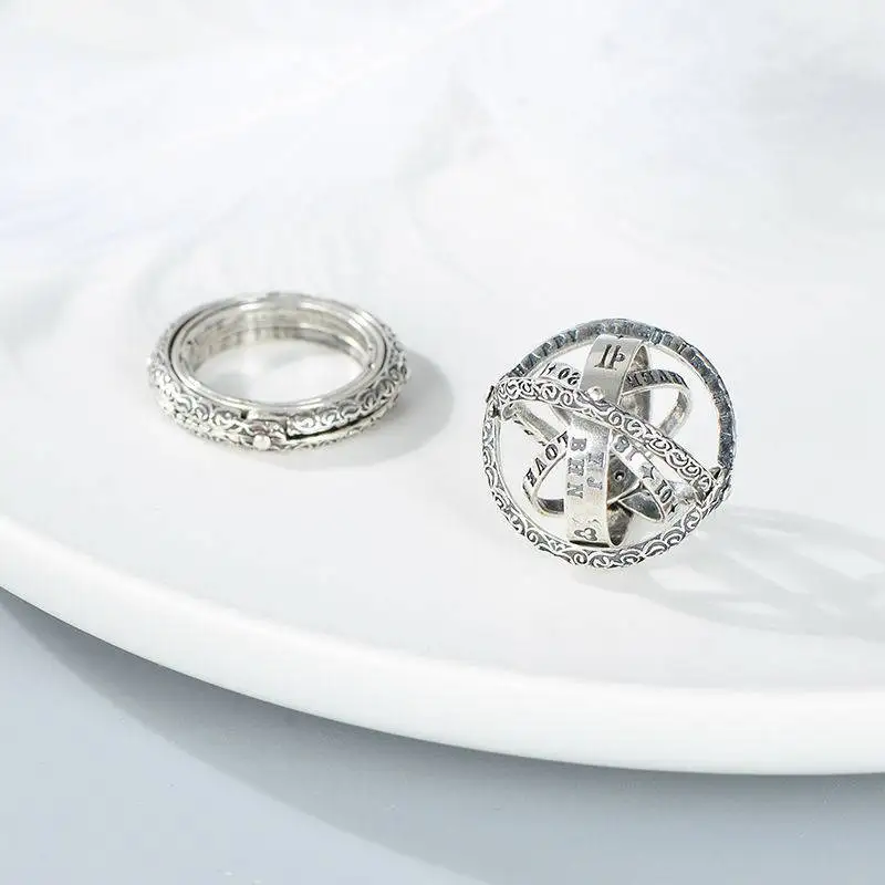 Креативное Винтажное кольцо в виде астрономической сферы с шариком, поворотные космические кольца для влюбленных, свадебные ювелирные изделия, подарок