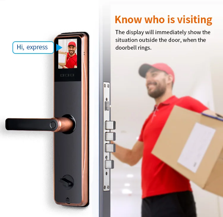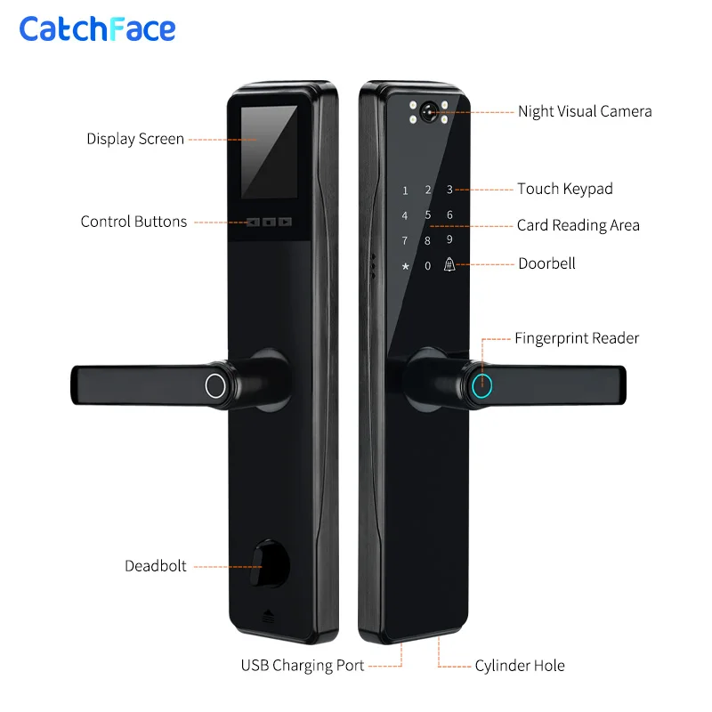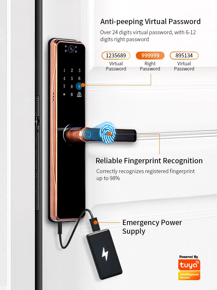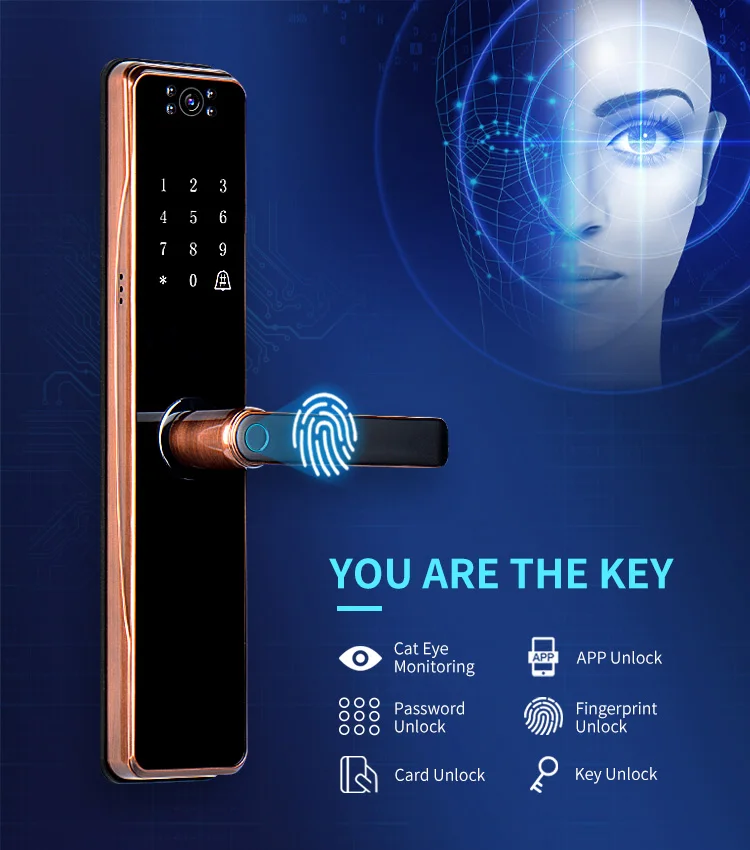 Умный дверной замок Tuya, электронный считыватель пальцев с камерой, с сенсорным экраном, RFID-картой, Wi-Fi