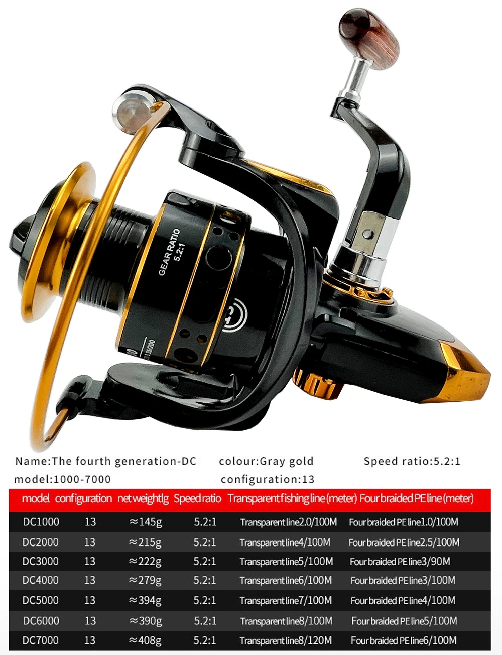 Рыболовная катушка 1000-7000, максимальная нагрузка 12 кг; Катушка ...