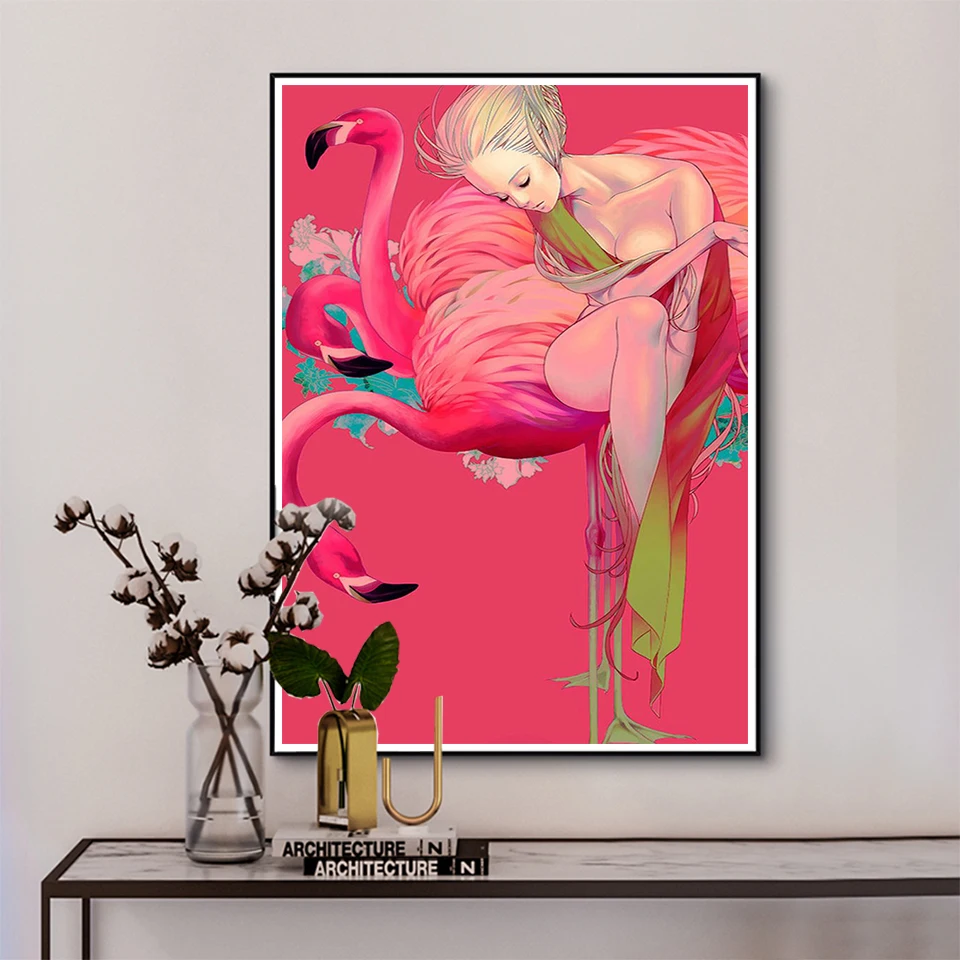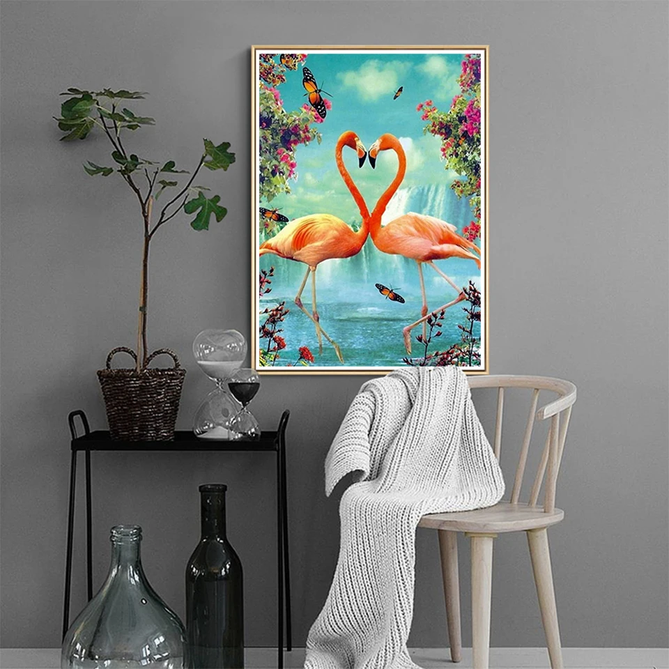 Алмазная живопись 5D сделай сам, Набор для вышивки крестиком, квадратнаякруглая Алмазная вышивка с животными, фламинго, стразы, картина, украшение для дома, подарок